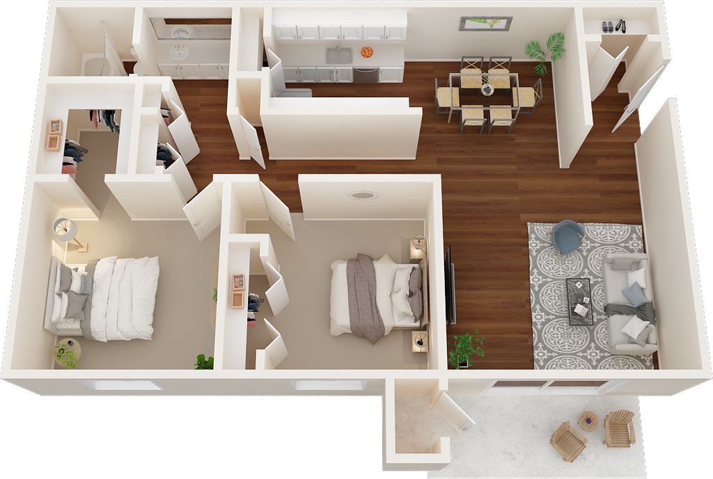 Modelo de apartamento: Plan BDesde $1,7112 Dormitorios, 1 Baño, 850 sq ftDisponible January 16, 2026![]()