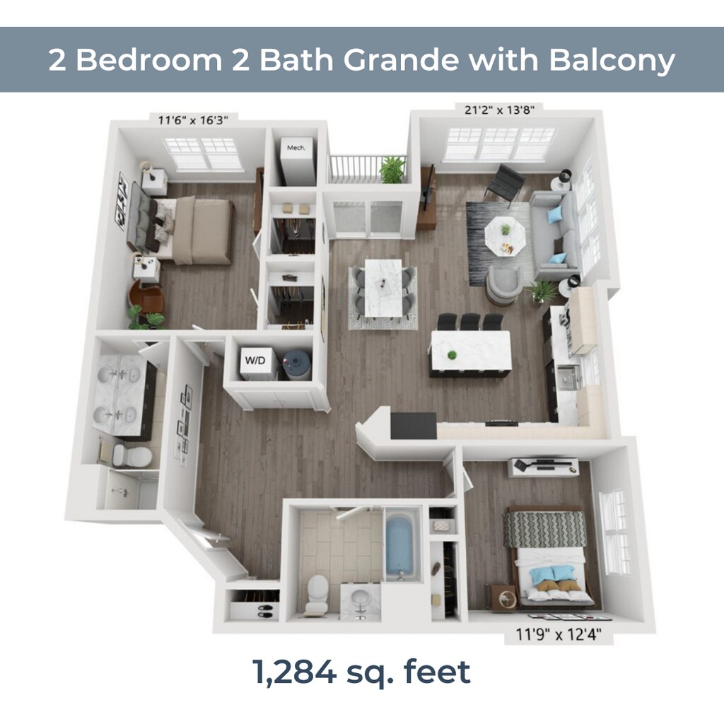 2 Dormitorios, 2 Baños, 1284 pies²Disponible AhoraEl más grandeEsta opción tiene las unidades más grandes para este modeloGalería del Modelo