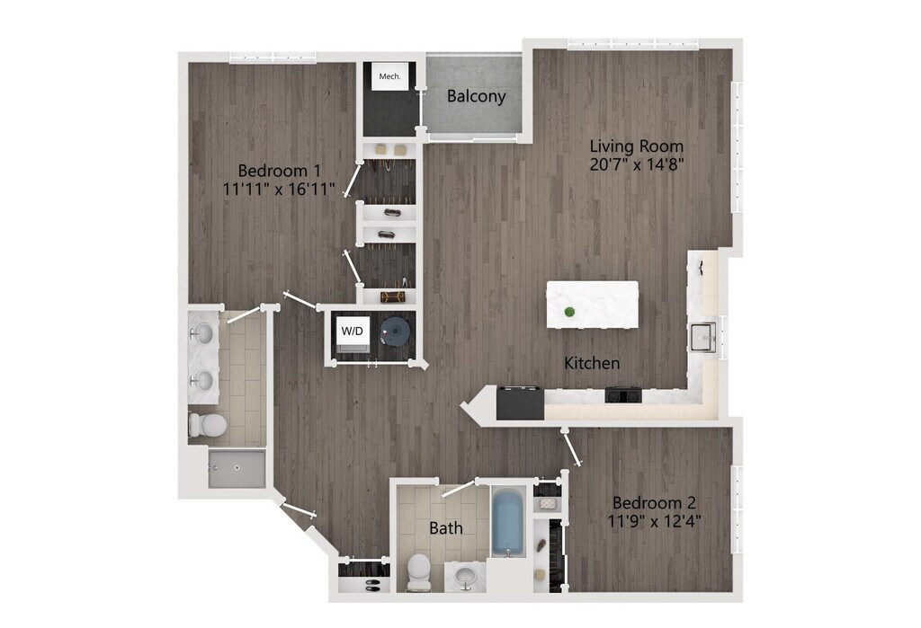 Modelo de apartamento: 1 BR 1 Bath w BalconyDesde $2,3051 Dormitorio, 1 Baño, 806 sq ftDisponible January 6, 2026![]()