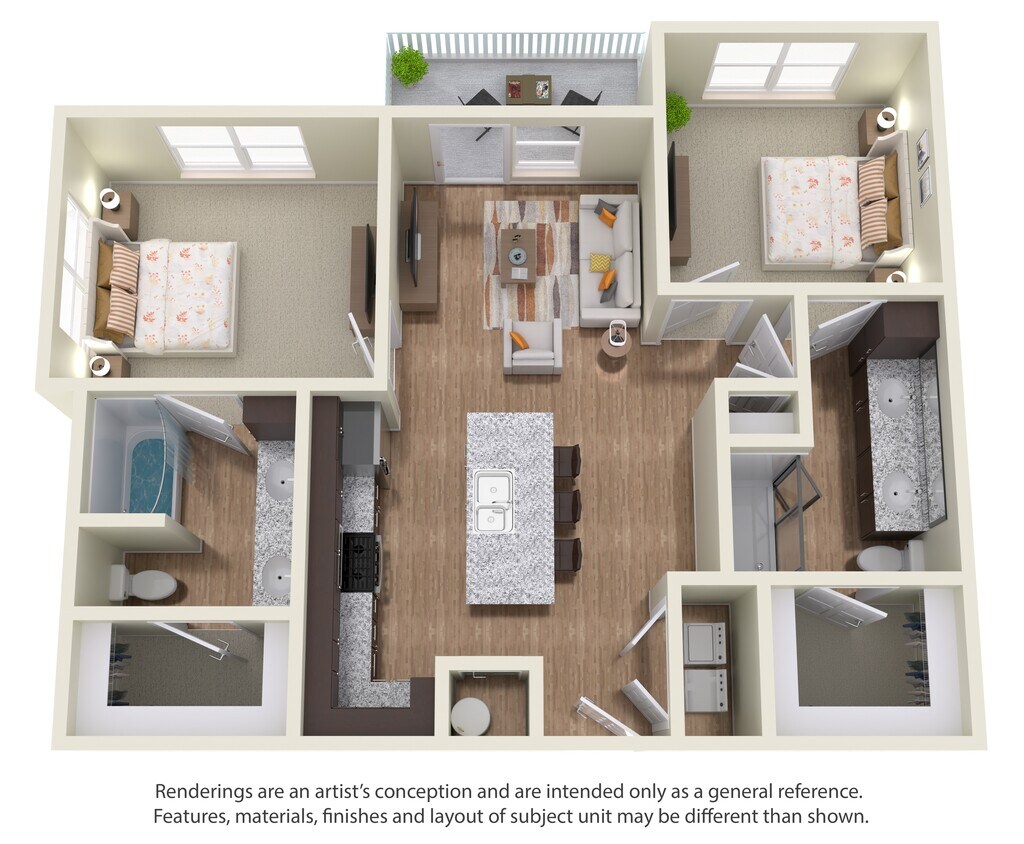 Modelo de apartamento: 3 Bed - C1$1,5993 Dormitorios, 2 Baños, 1180 sq ftDisponible Ahora![]()