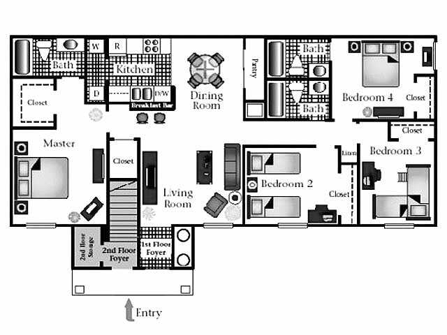Three Bedroom Two Bath - Plano 1 4 Dormitorios
