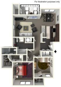 Modelo de apartamento: 1 Bed 1 BathDesde $1,3951 Dormitorio, 1 Baño, 728 sq ftDisponible Ahora![]()