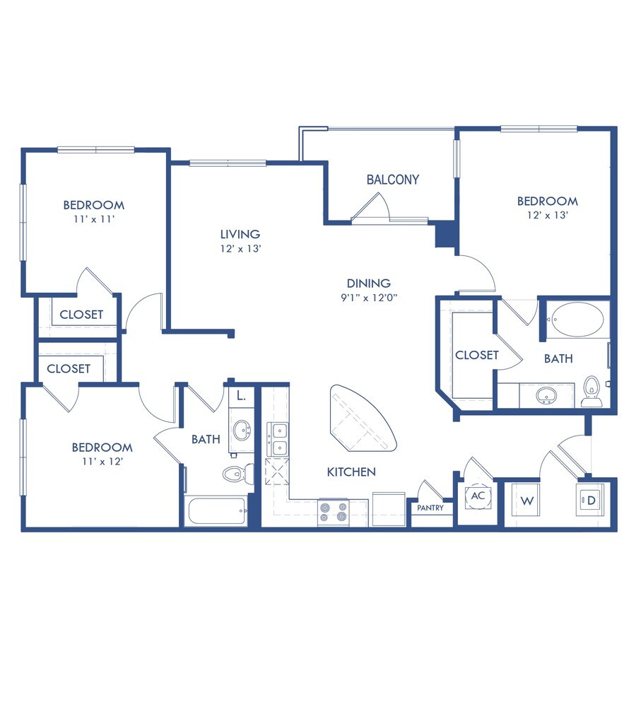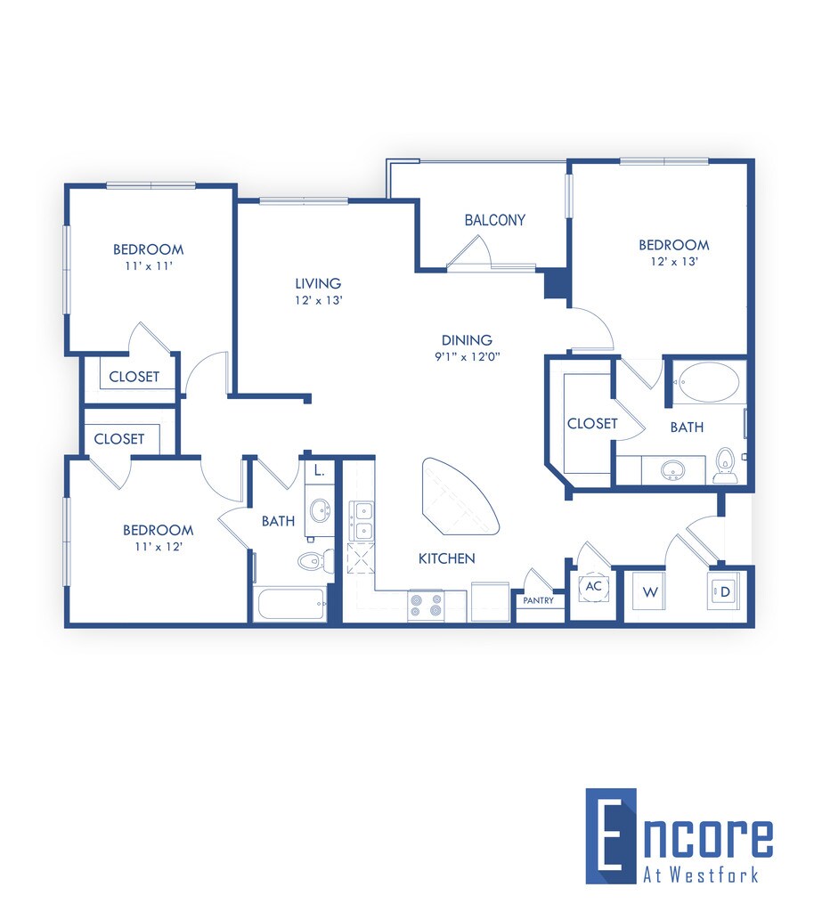 Modelo de apartamento: C13 Dormitorios, 2 Baños, 1311 sq ftDisponible Ahora![]()