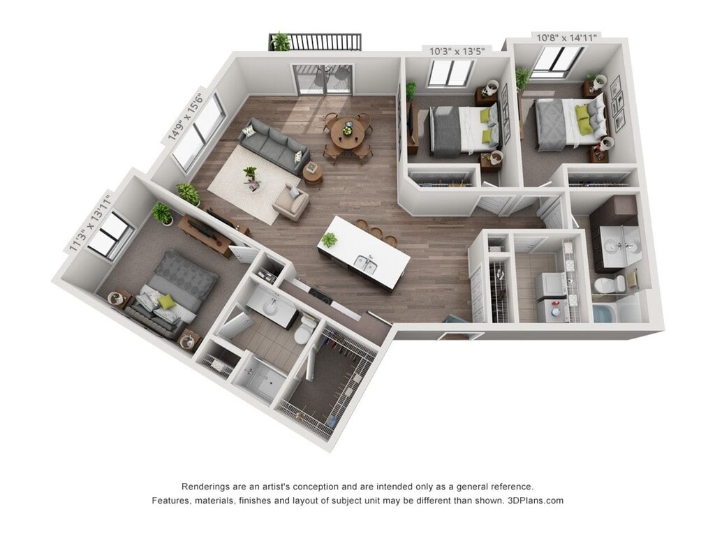 Estudio, 1 Baño, 611 pies²Disponible AhoraGalería del Modelo