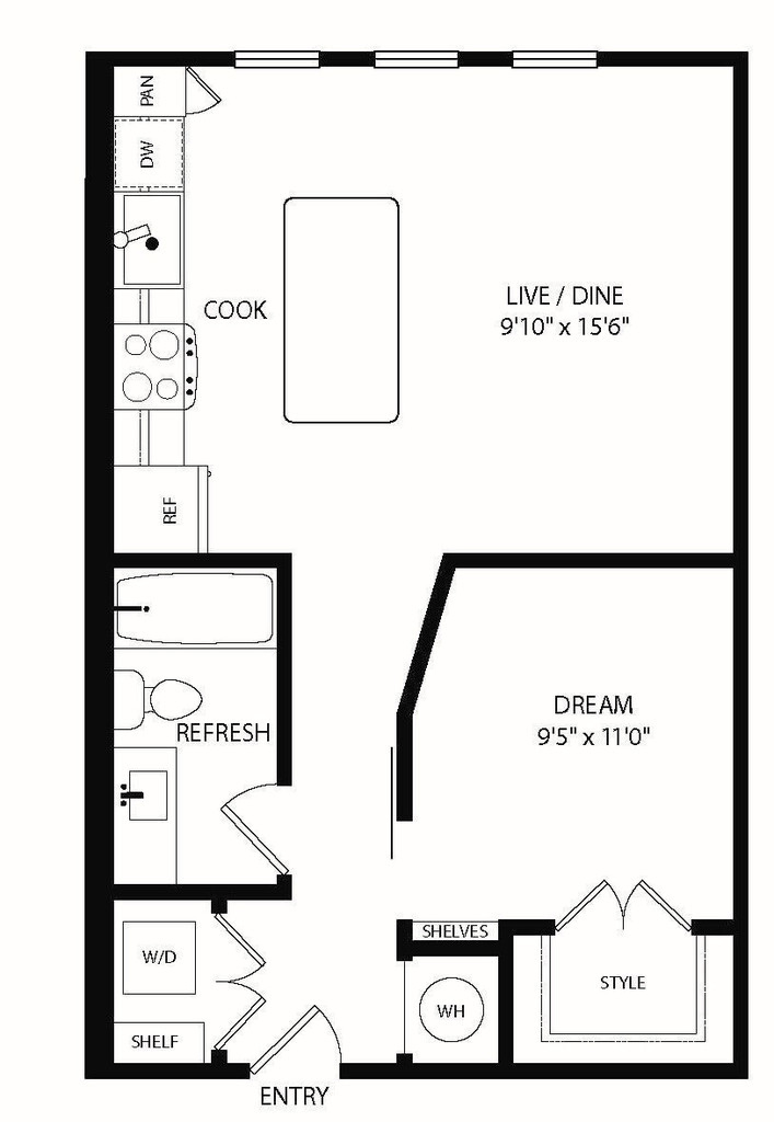 Modelo de apartamento: S1 - 0x1Desde $1,402Estudio, 1 Baño, 613 sq ftDisponible AhoraLos planos de la planta son una interpretación artística. Todas las dimensiones son aproximadas. Los tamaños o el detalle del producto real y sus especificaciones pueden variar. No todas las características están disponibles en todos los hogares para rentar. Los precios y la disponibilidad están sujetos a cambios. El alquiler que se muestra es mensual. Se pueden aplicar ciertos cargos, por ejemplo, entrega de paquetes, recolección de basura, agua, servicios, etc. Depositos varian. Consulta a un representante para conocer detalles.