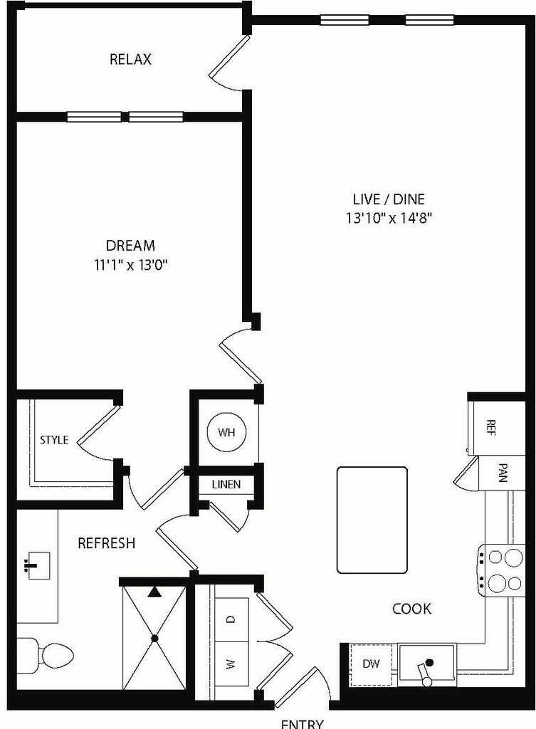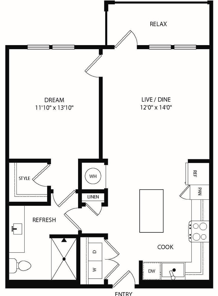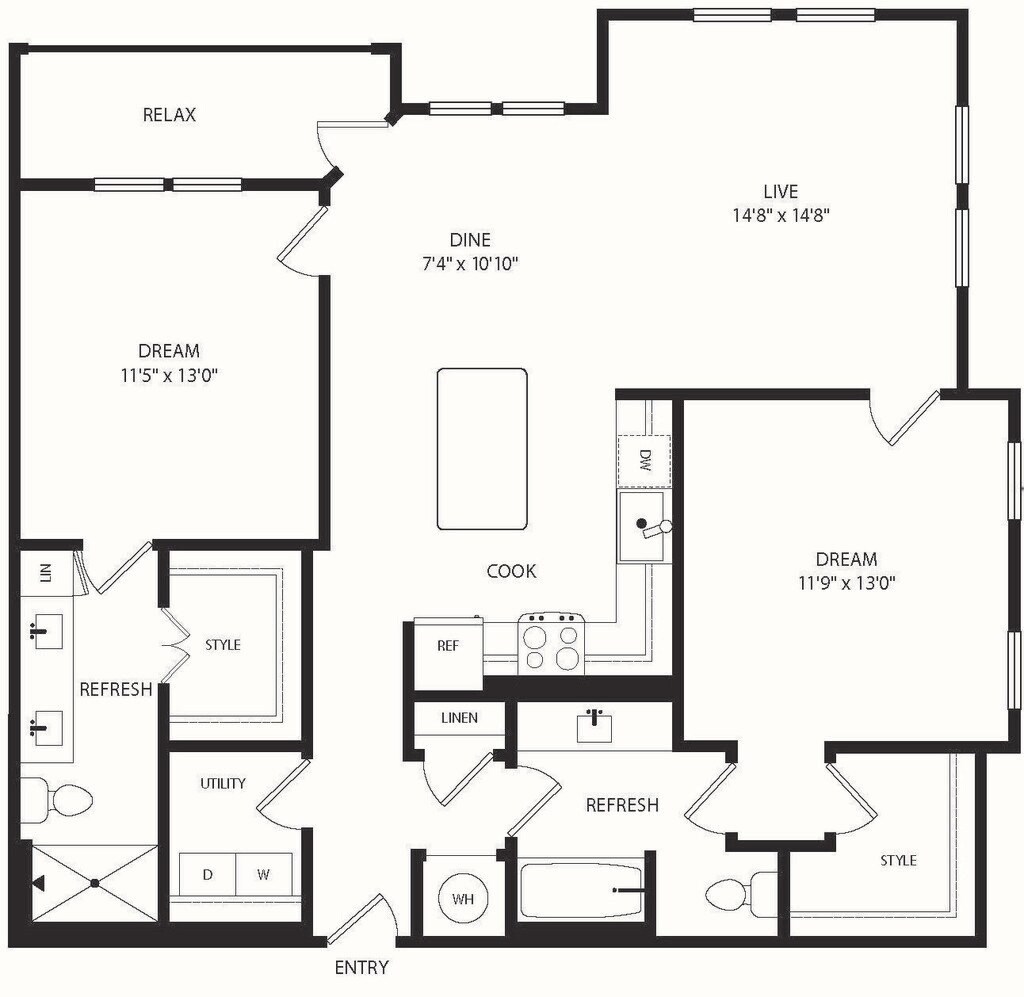 1 Dormitorio, 1 Baño, 791 pies²Disponible AhoraEl más grandeEsta opción tiene las unidades más grandes para este modeloGalería del Modelo