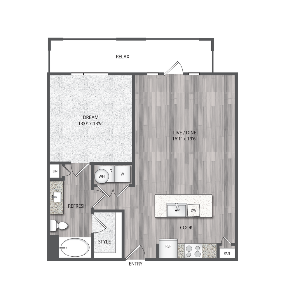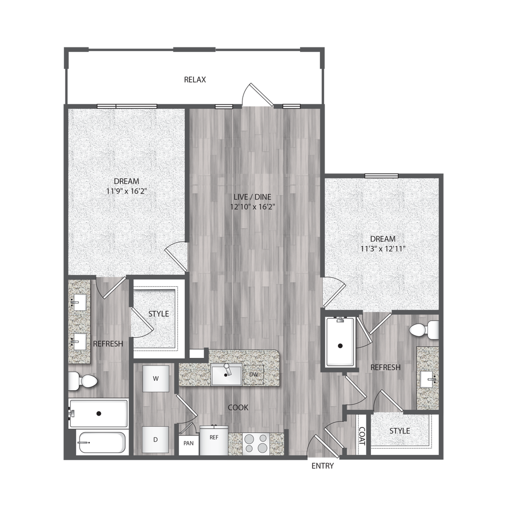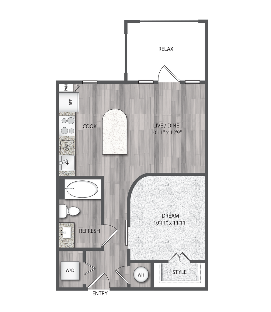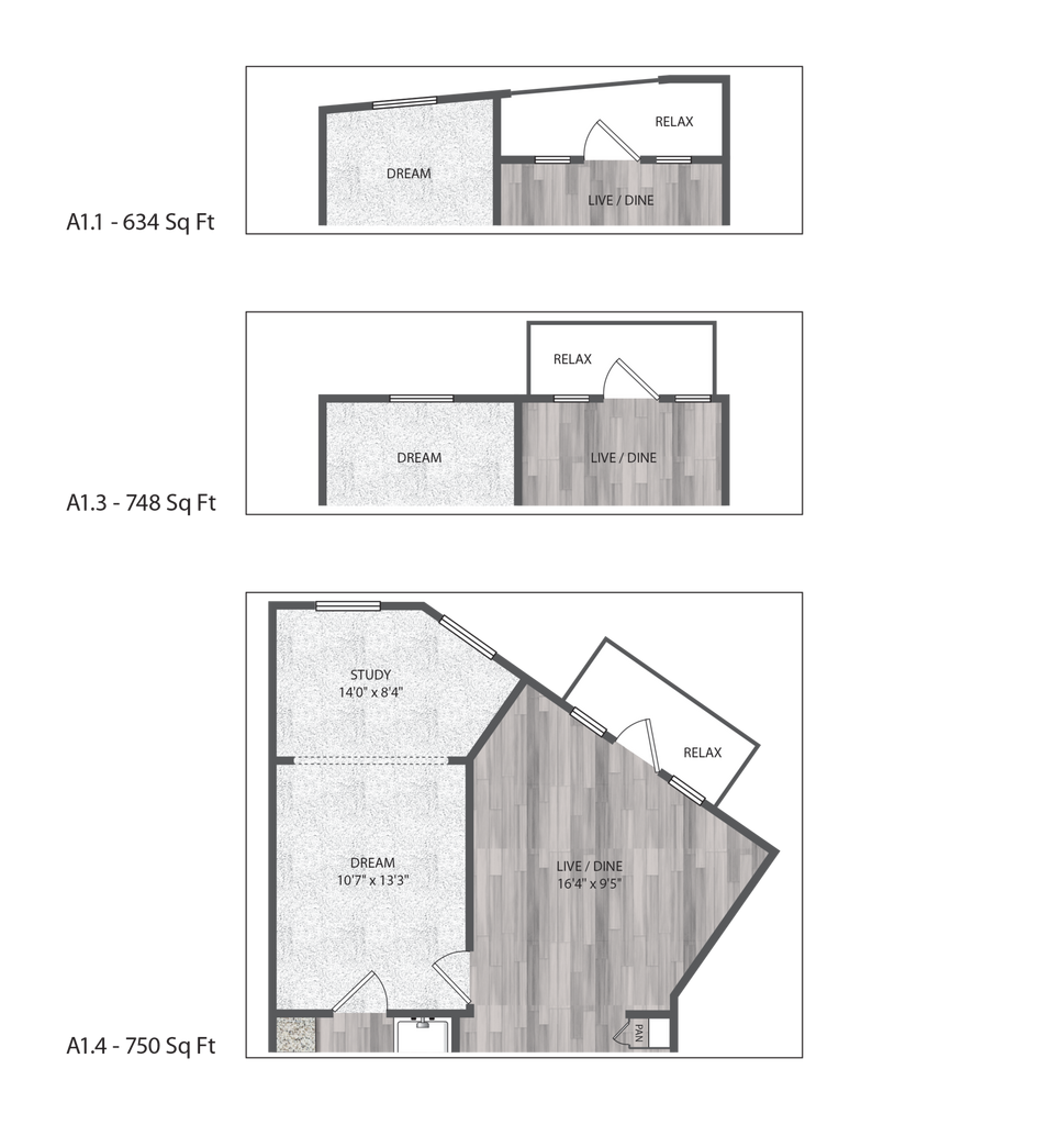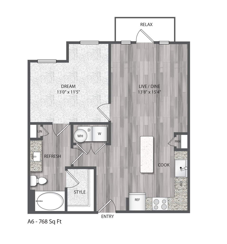 1 Dormitorio, 1 Baño, 644 pies²Disponible AhoraGalería del Modelo