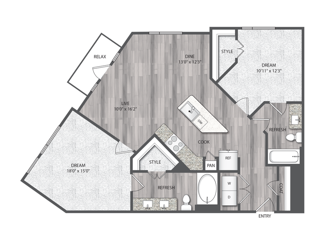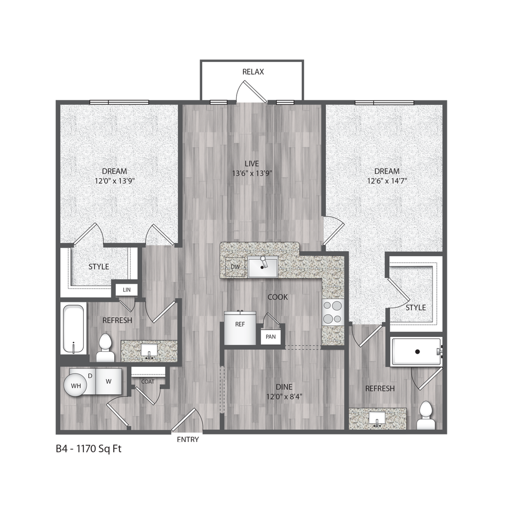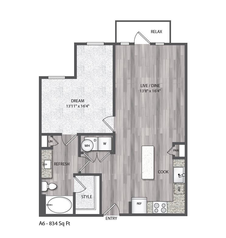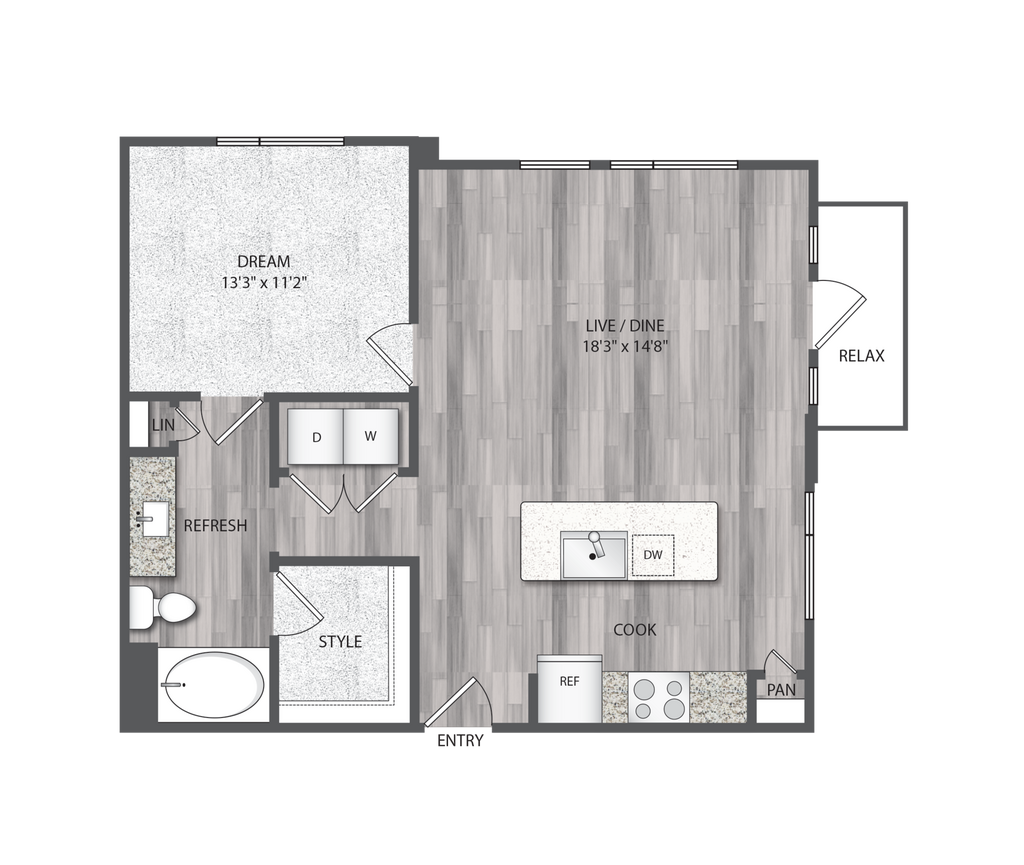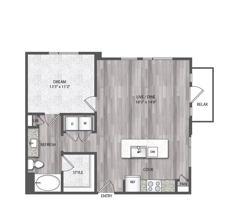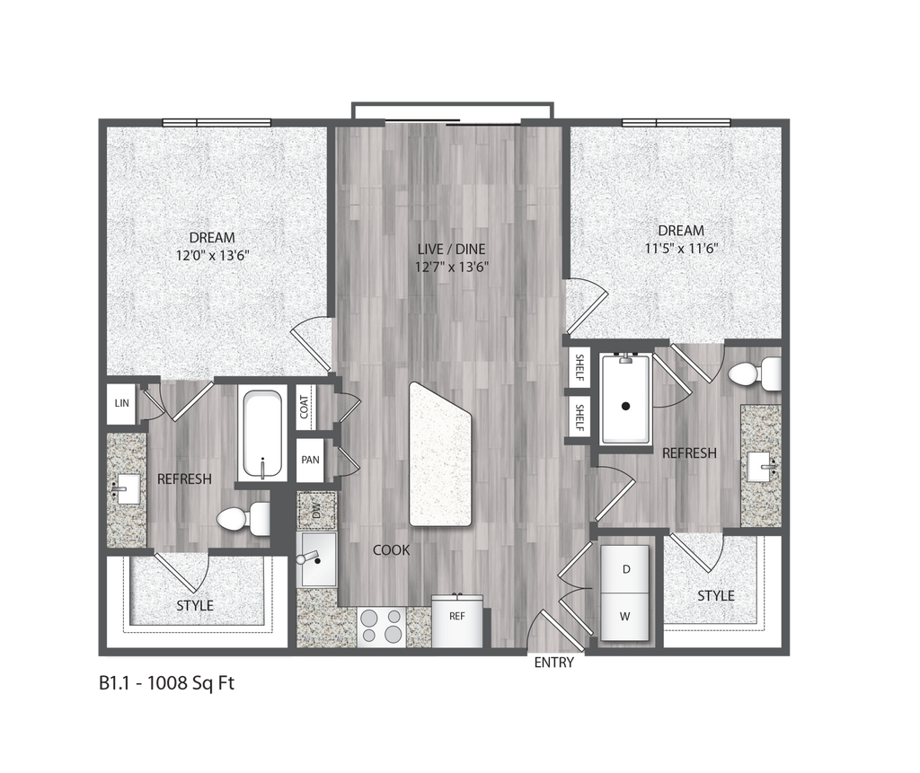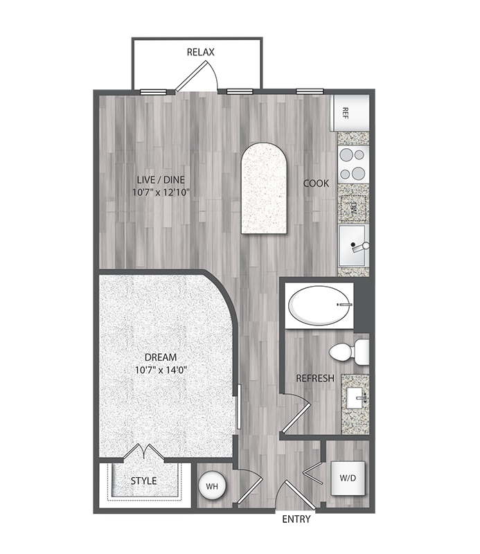1 Dormitorio, 1 Baño, 644 pies²Disponible AhoraGalería del Modelo