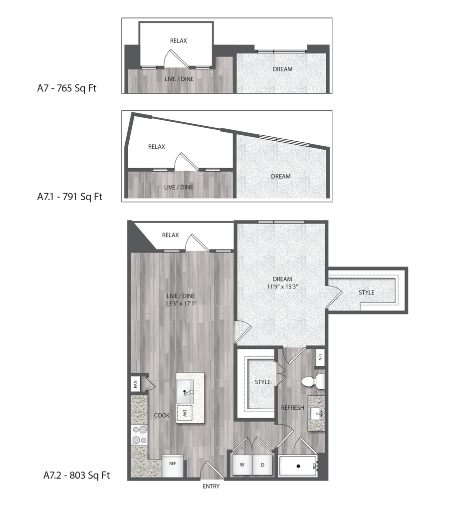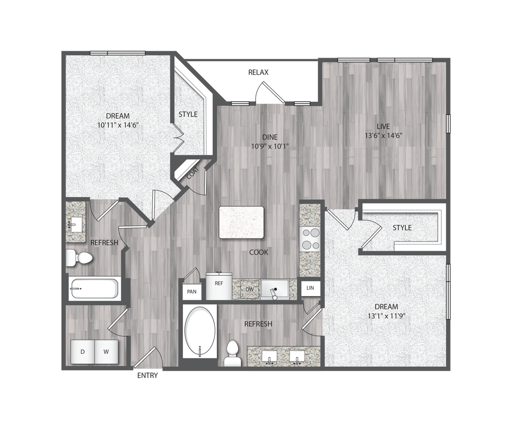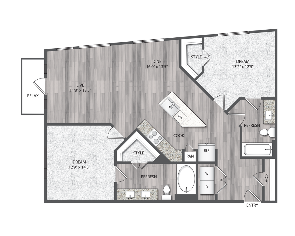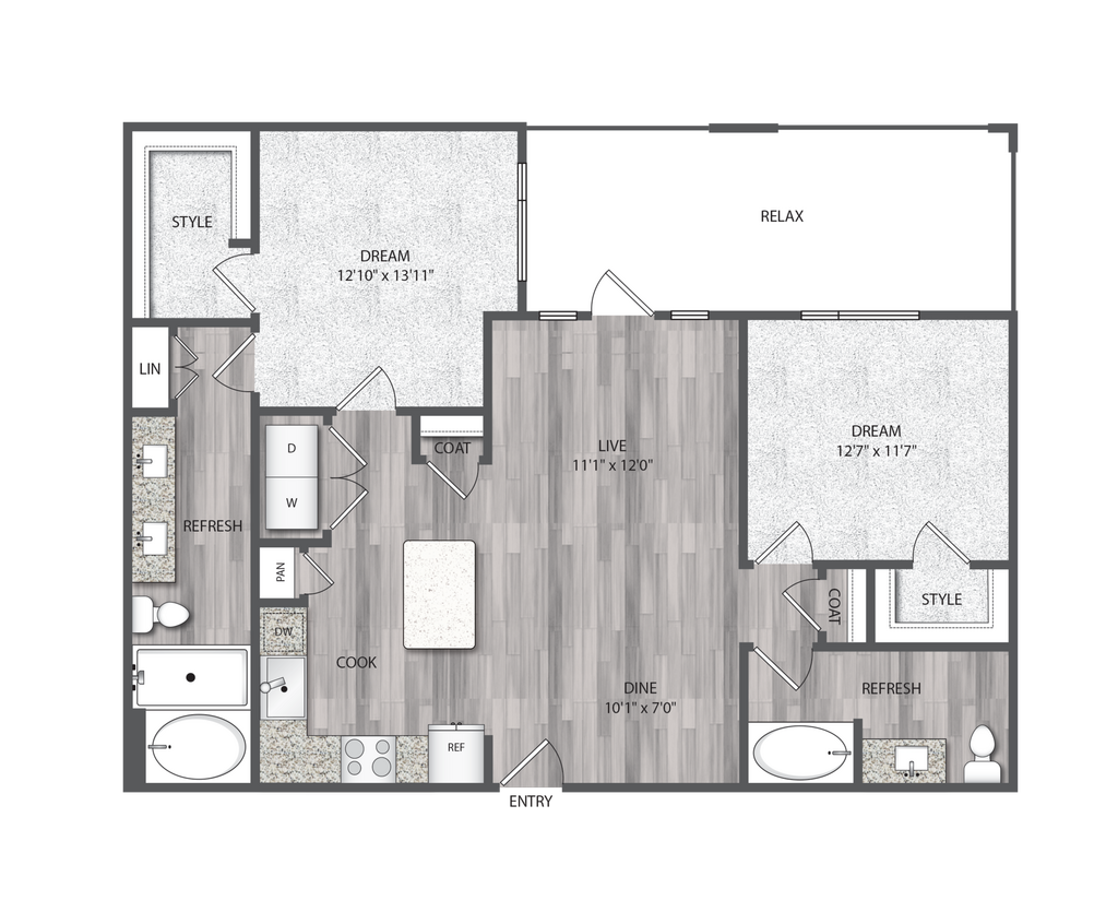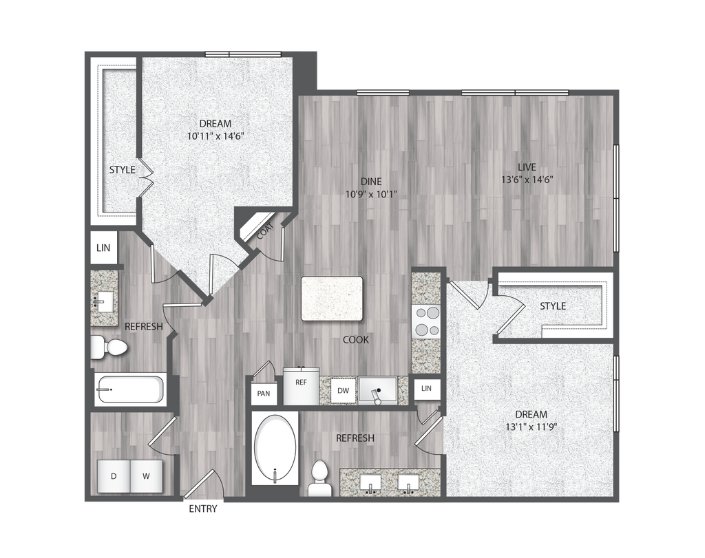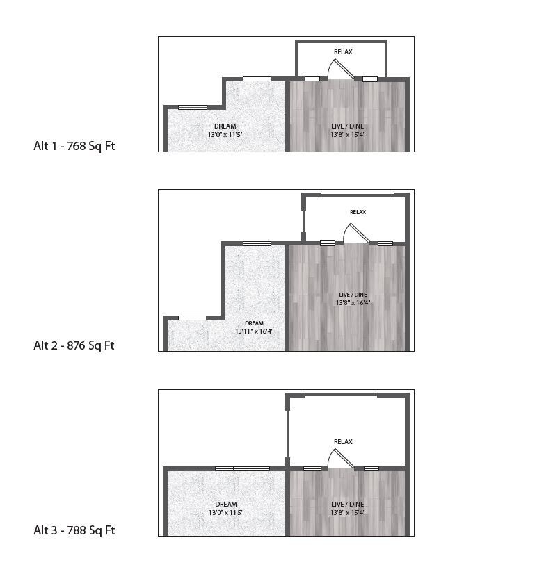 1 Dormitorio, 1 Baño, 644 pies²Disponible AhoraGalería del Modelo