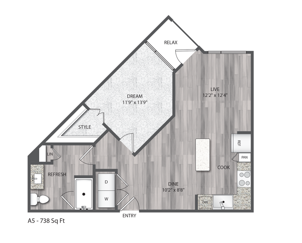 Modelo de apartamento: A2Desde $1,4331 Dormitorio, 1 Baño, 600 sq ftDisponible AhoraLos planos de la planta son una interpretación artística. Todas las dimensiones son aproximadas. Los tamaños o el detalle del producto real y sus especificaciones pueden variar. No todas las características están disponibles en todos los hogares para rentar. Los precios y la disponibilidad están sujetos a cambios. El alquiler que se muestra es mensual. Se pueden aplicar ciertos cargos, por ejemplo, entrega de paquetes, recolección de basura, agua, servicios, etc. Depositos varian. Consulta a un representante para conocer detalles.