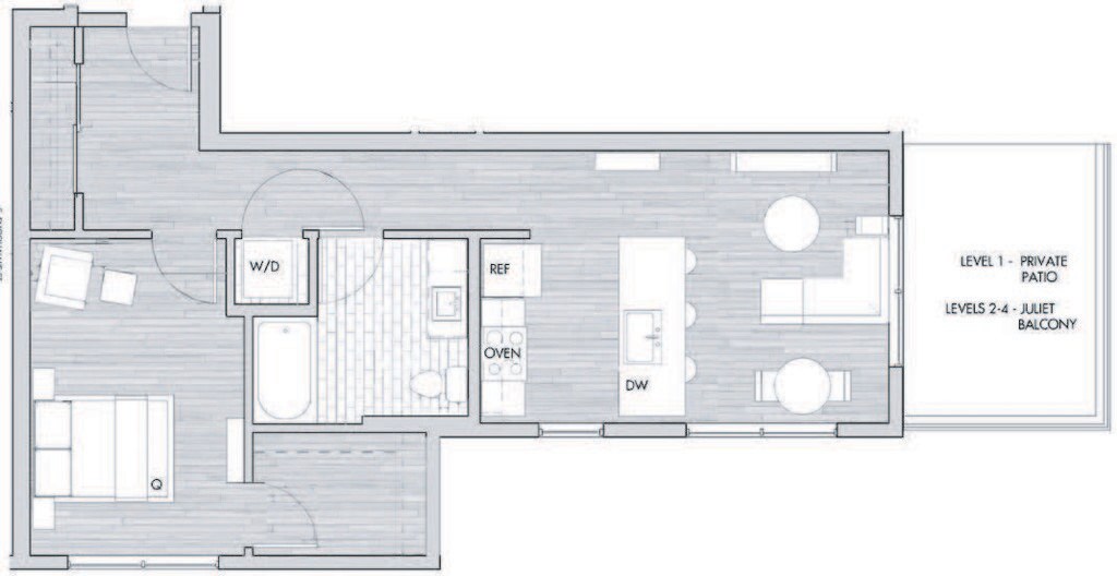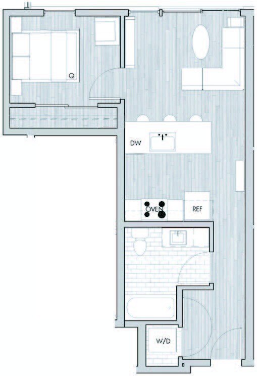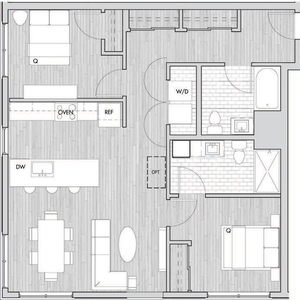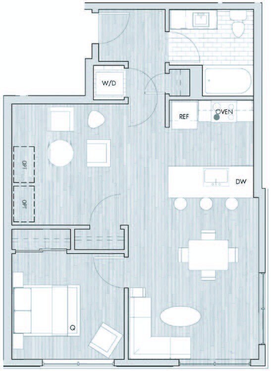 1 Dormitorio, 1 Baño, 519-684 pies²Disponible AhoraGalería del Modelo