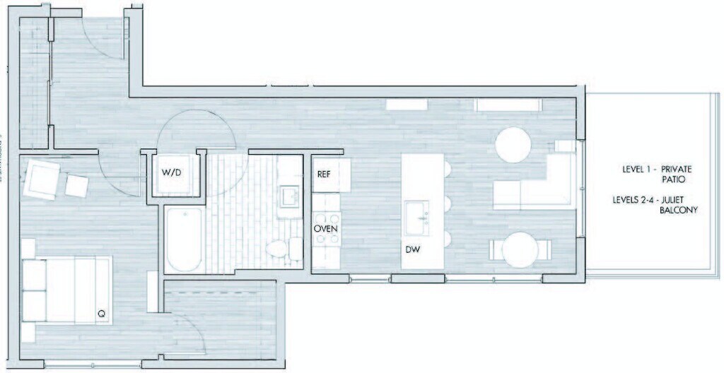Estudio, 1 Baño, 532-658 pies²El más grandeEsta opción tiene las unidades más grandes para este modeloGalería del Modelo