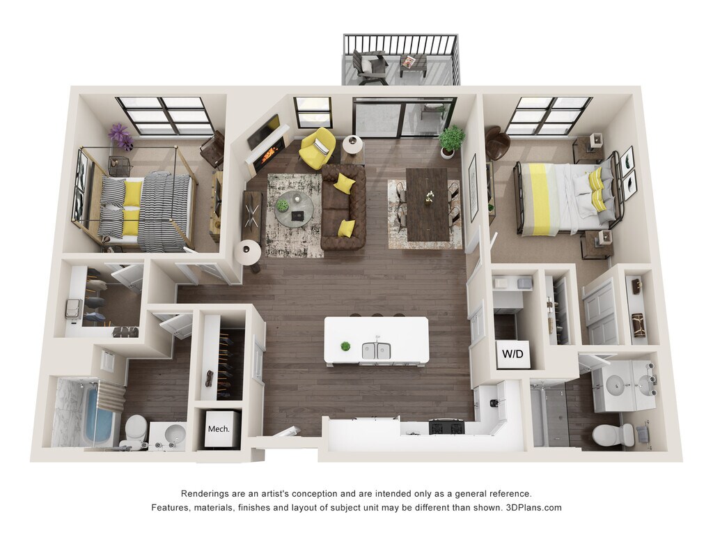 Modelo de apartamento: 2 Bed2 Dormitorios, 2.5 Baños, 1417 sq ftNo Disponible![]()