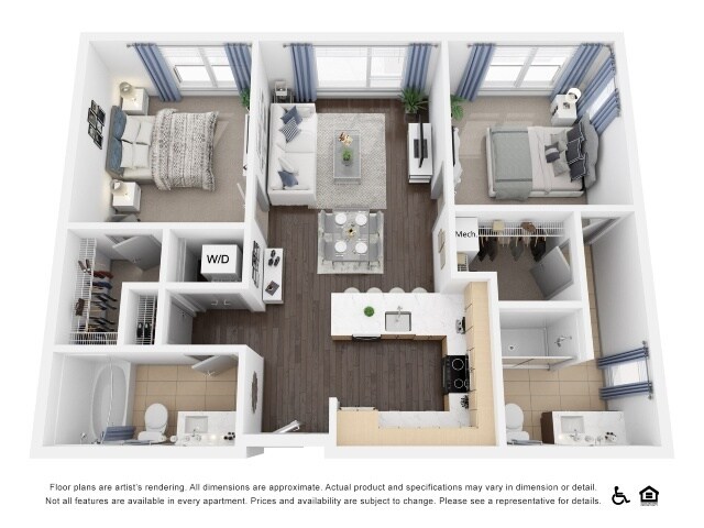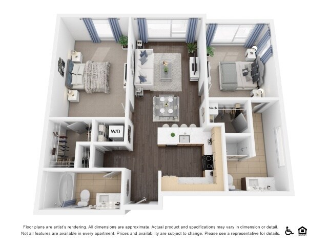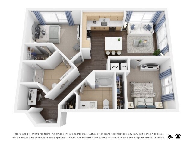 Alyssa - Plano 1 Los planos de la planta son una interpretación artística. Todas las dimensiones son aproximadas. Los tamaños o el detalle del producto real y sus especificaciones pueden variar. No todas las características están disponibles en todos los hogares para rentar. Los precios y la disponibilidad están sujetos a cambios. El alquiler que se muestra es mensual. Se pueden aplicar ciertos cargos, por ejemplo, entrega de paquetes, recolección de basura, agua, servicios, etc. Depositos varian. Consulta a un representante para conocer detalles.