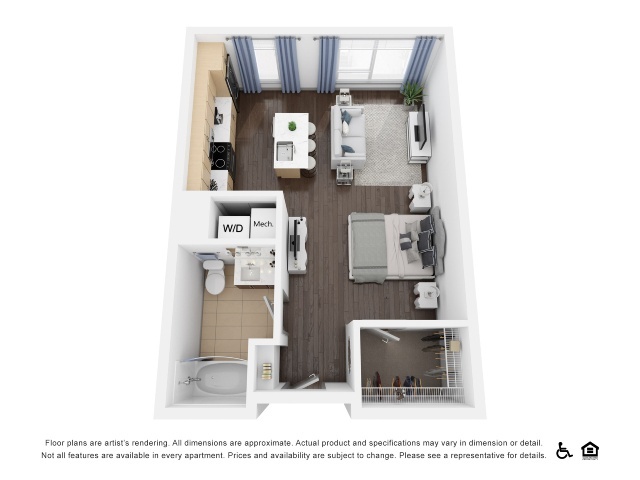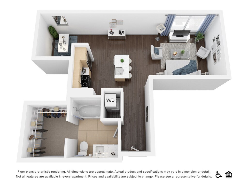 Modelo de apartamento: CharlotteEstudio, 1 Baño, 596 sq ftDisponible AhoraLos planos de la planta son una interpretación artística. Todas las dimensiones son aproximadas. Los tamaños o el detalle del producto real y sus especificaciones pueden variar. No todas las características están disponibles en todos los hogares para rentar. Los precios y la disponibilidad están sujetos a cambios. El alquiler que se muestra es mensual. Se pueden aplicar ciertos cargos, por ejemplo, entrega de paquetes, recolección de basura, agua, servicios, etc. Depositos varian. Consulta a un representante para conocer detalles.
