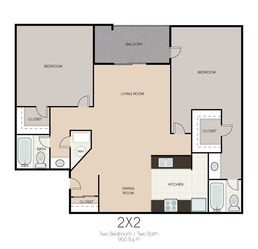 2 Dormitorios, 2 Baños, 900 pies²Disponible January 17, 2026Galería del Modelo