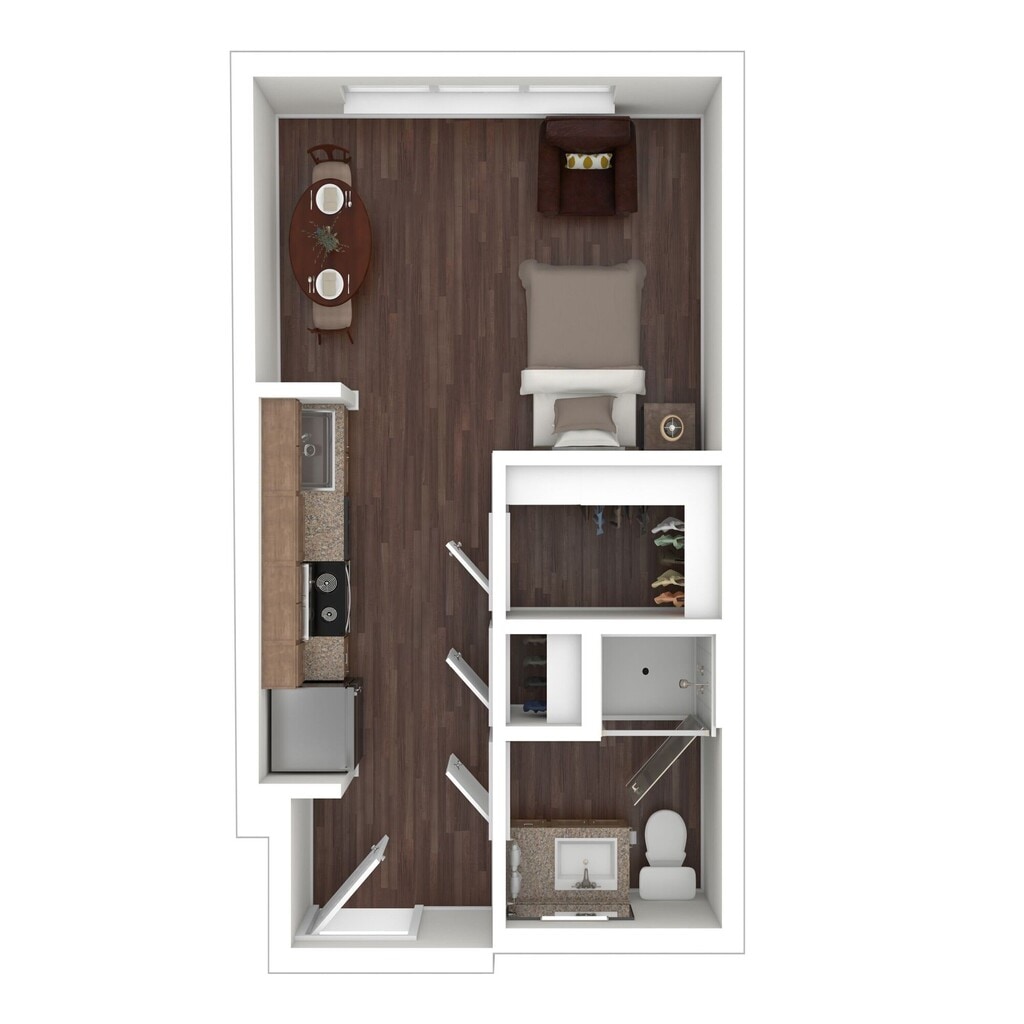 Estudio, 1 Baño, 500 pies²Galería del Modelo