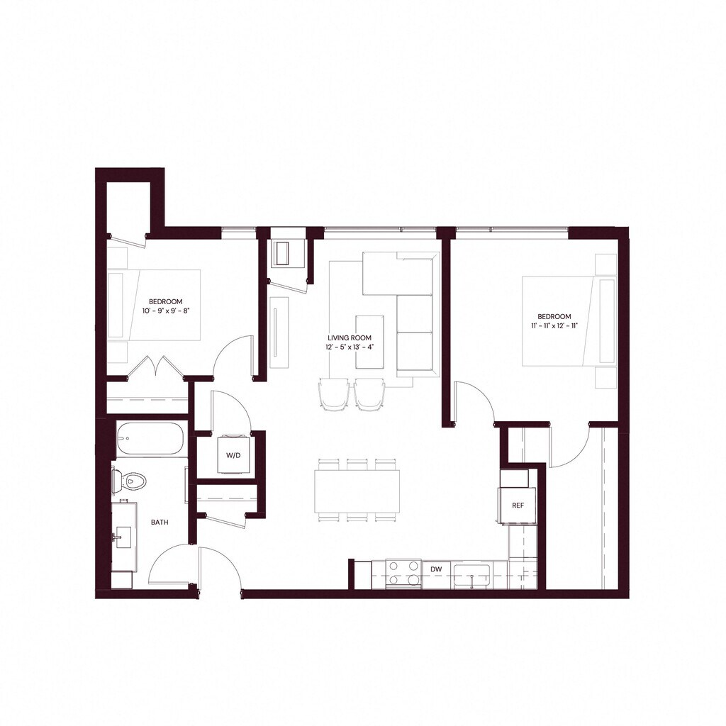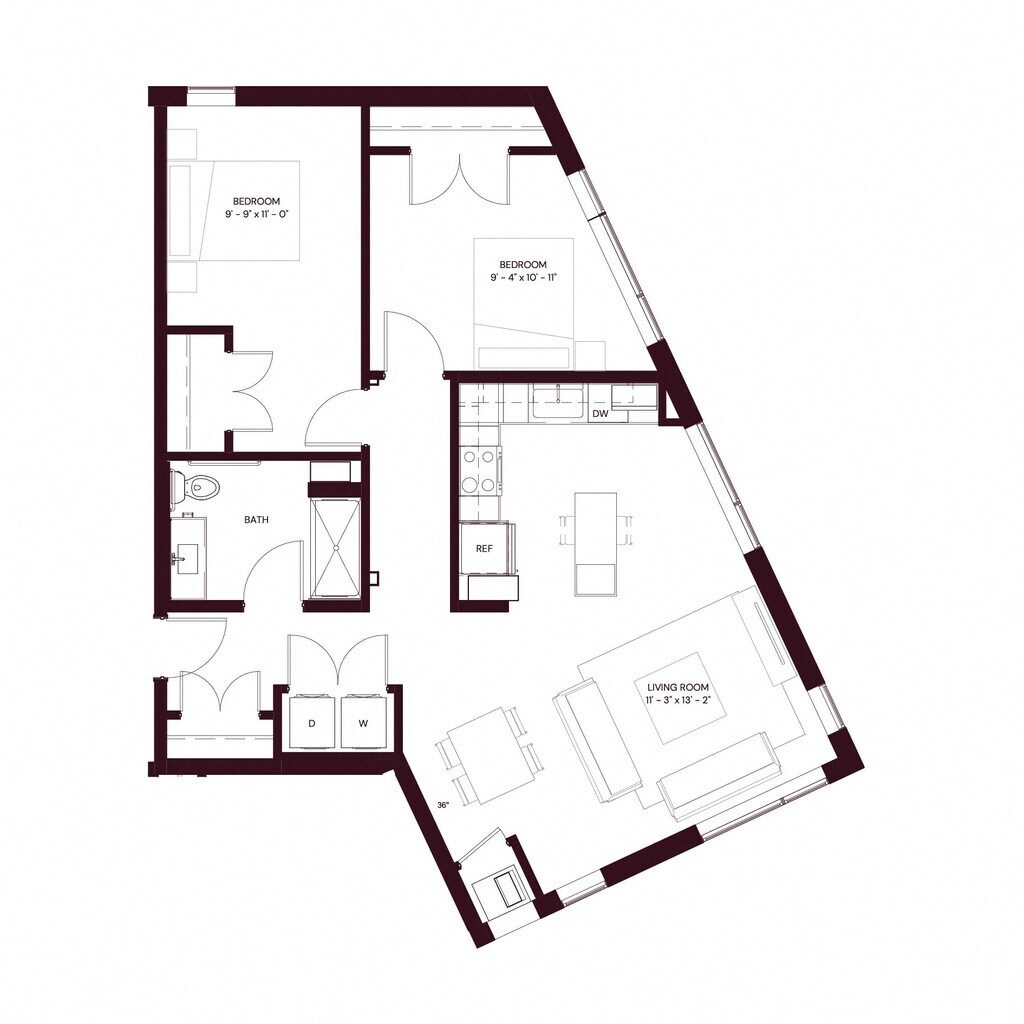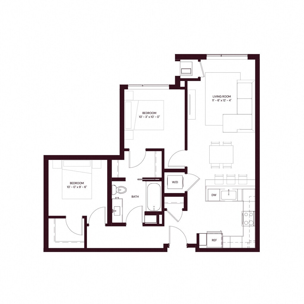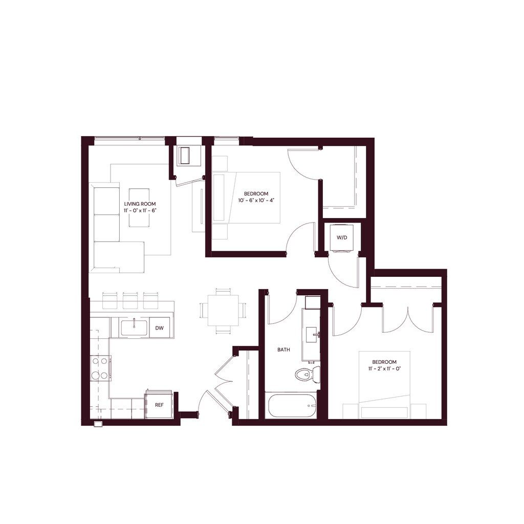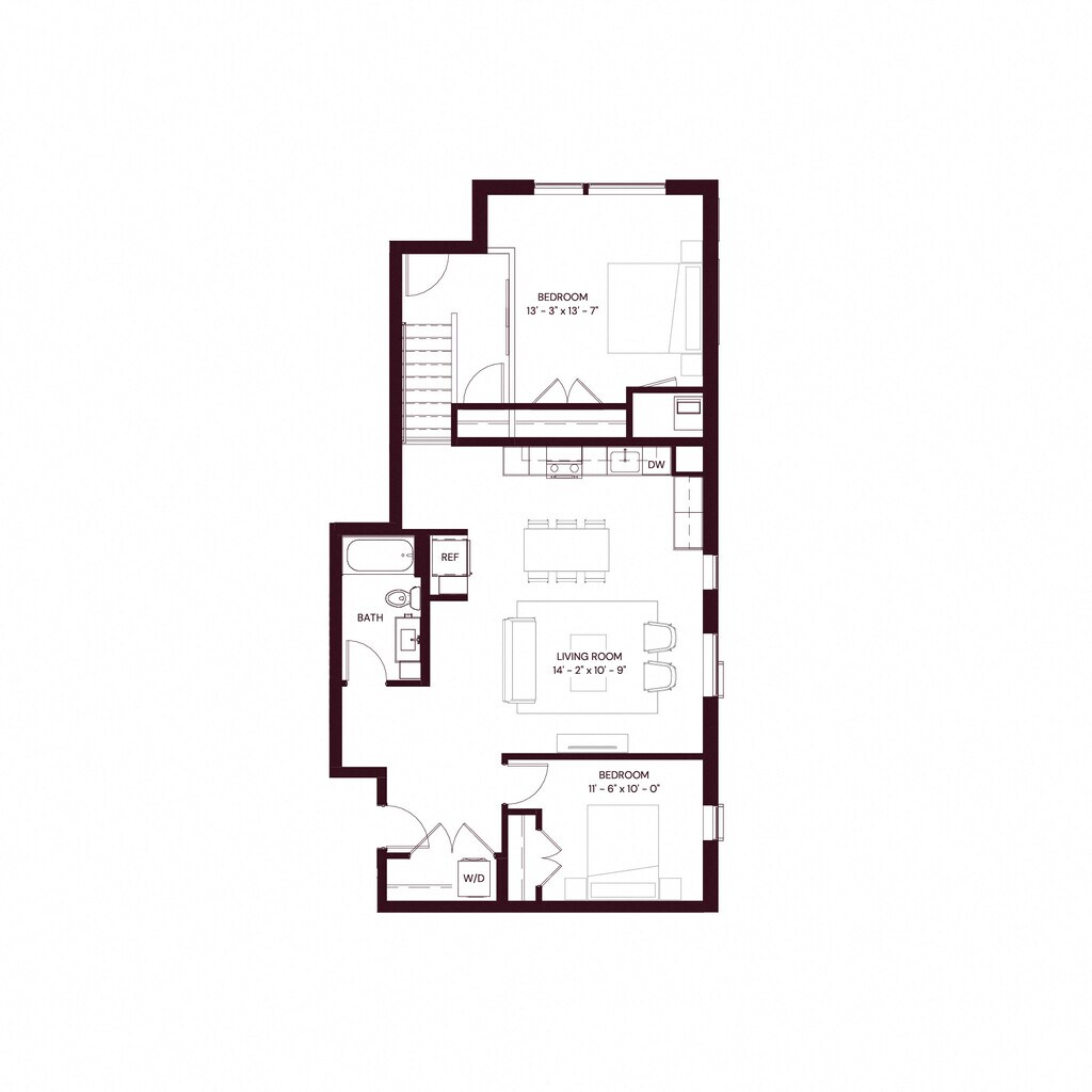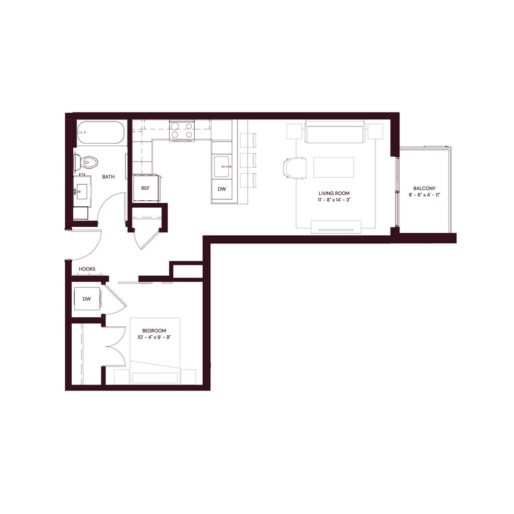 Modelo de apartamento: Dickson1 Dormitorio, 1 Baño, 528 sq ftDisponible Ahora![]()