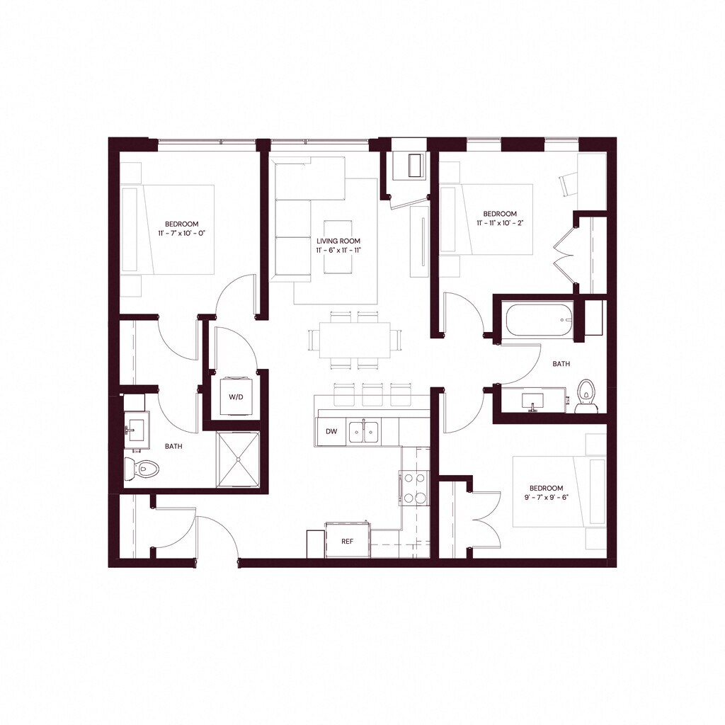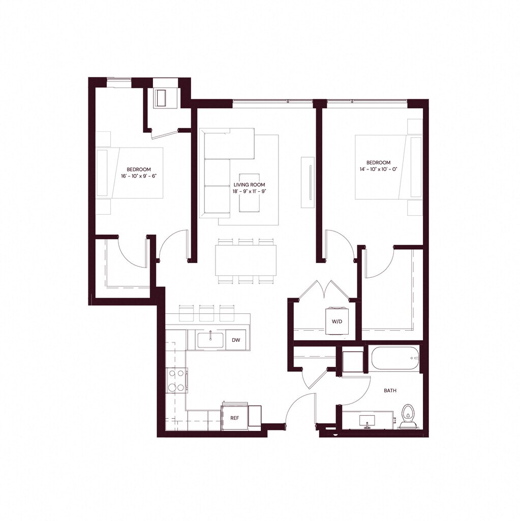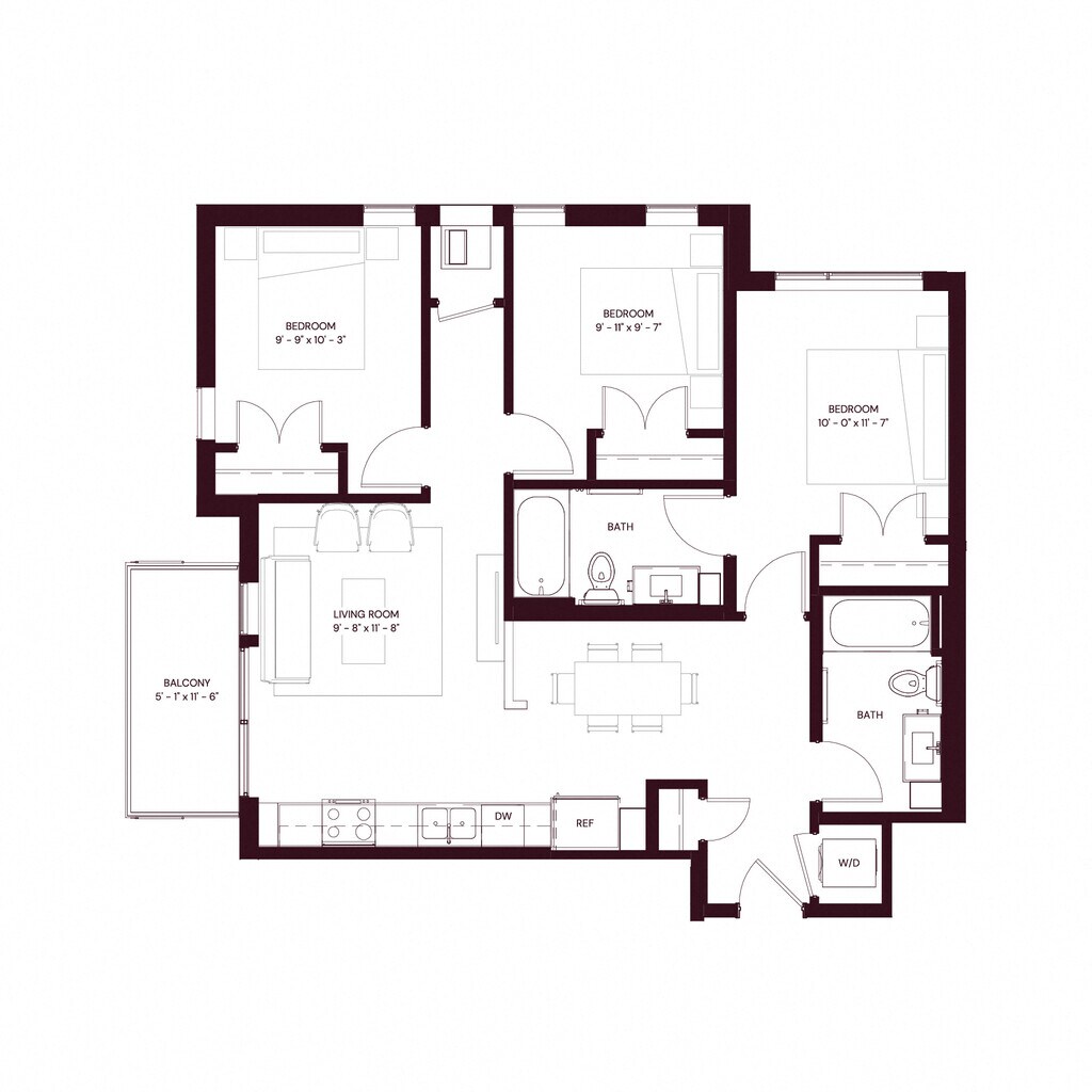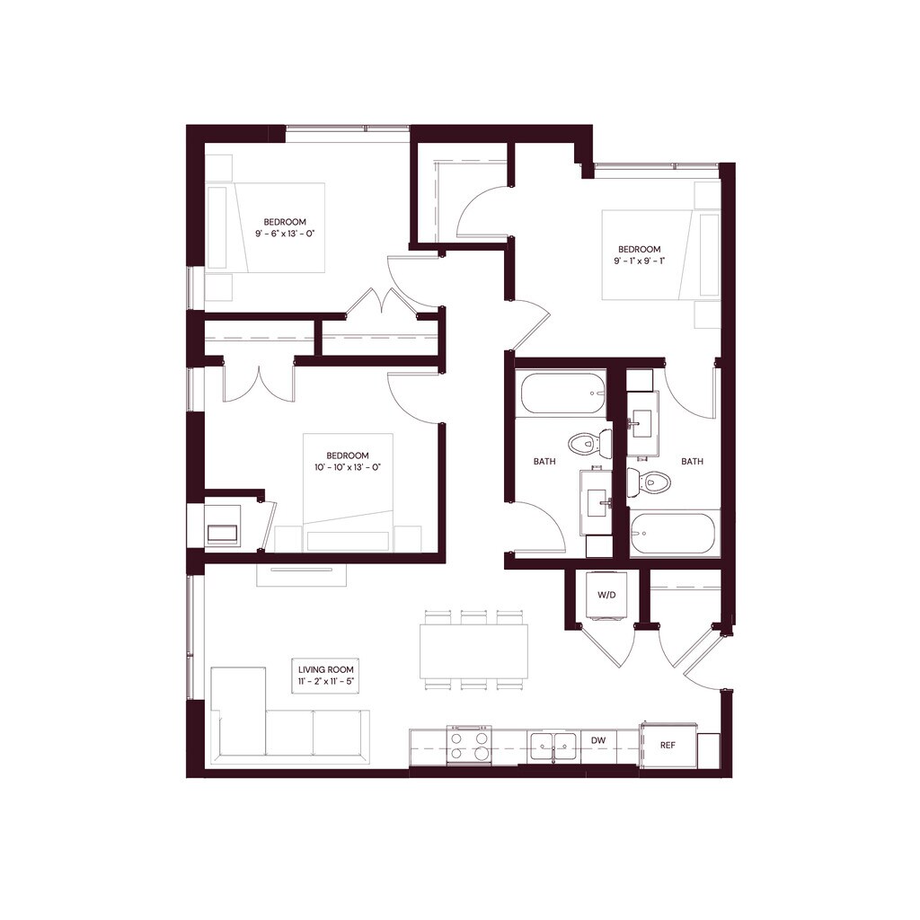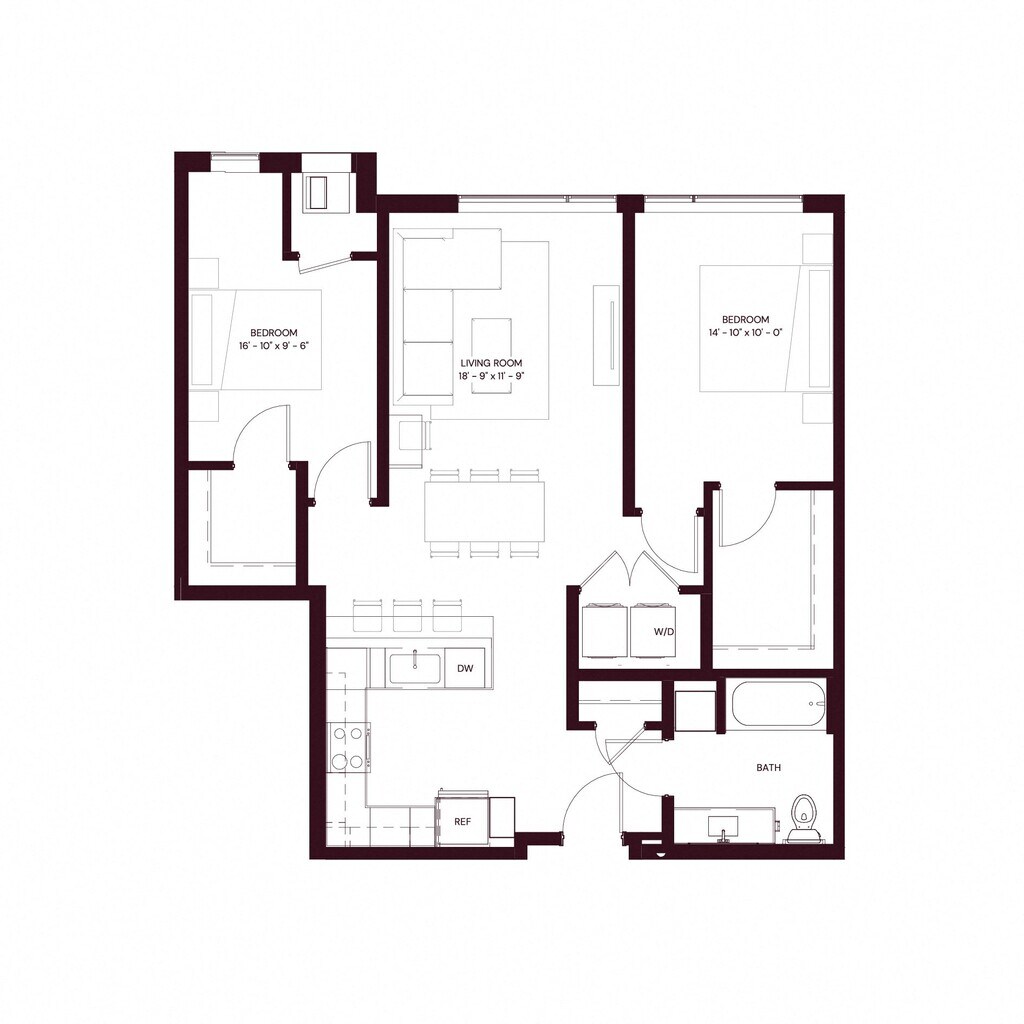 Modelo de apartamento: Dickson1 Dormitorio, 1 Baño, 528 sq ftDisponible Ahora![]()