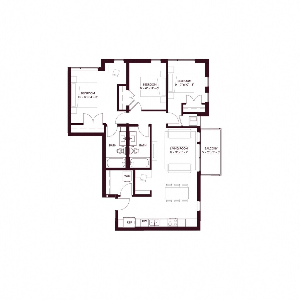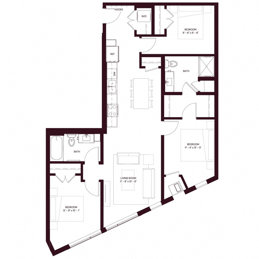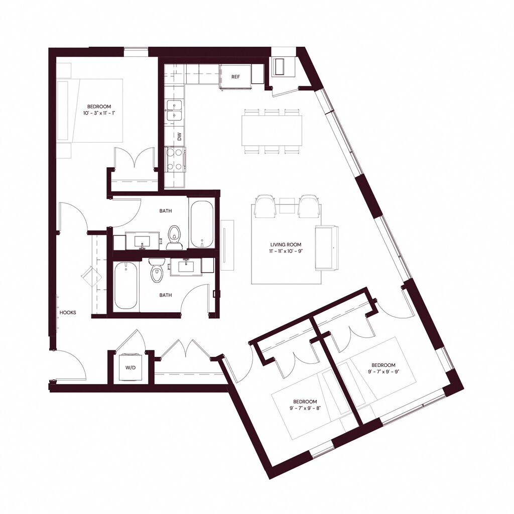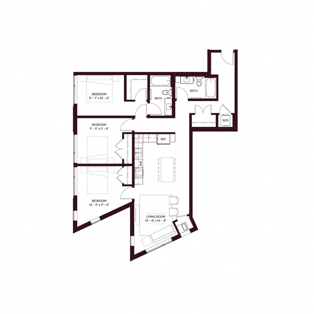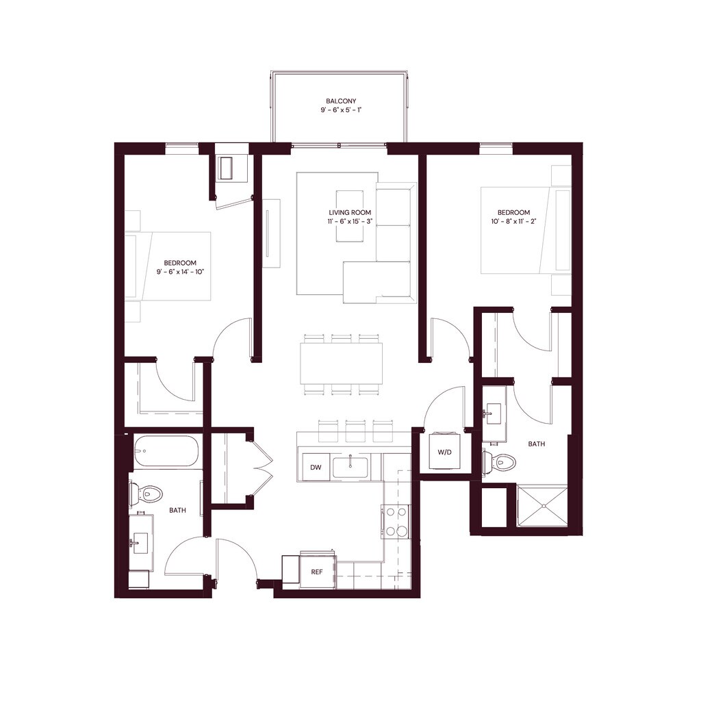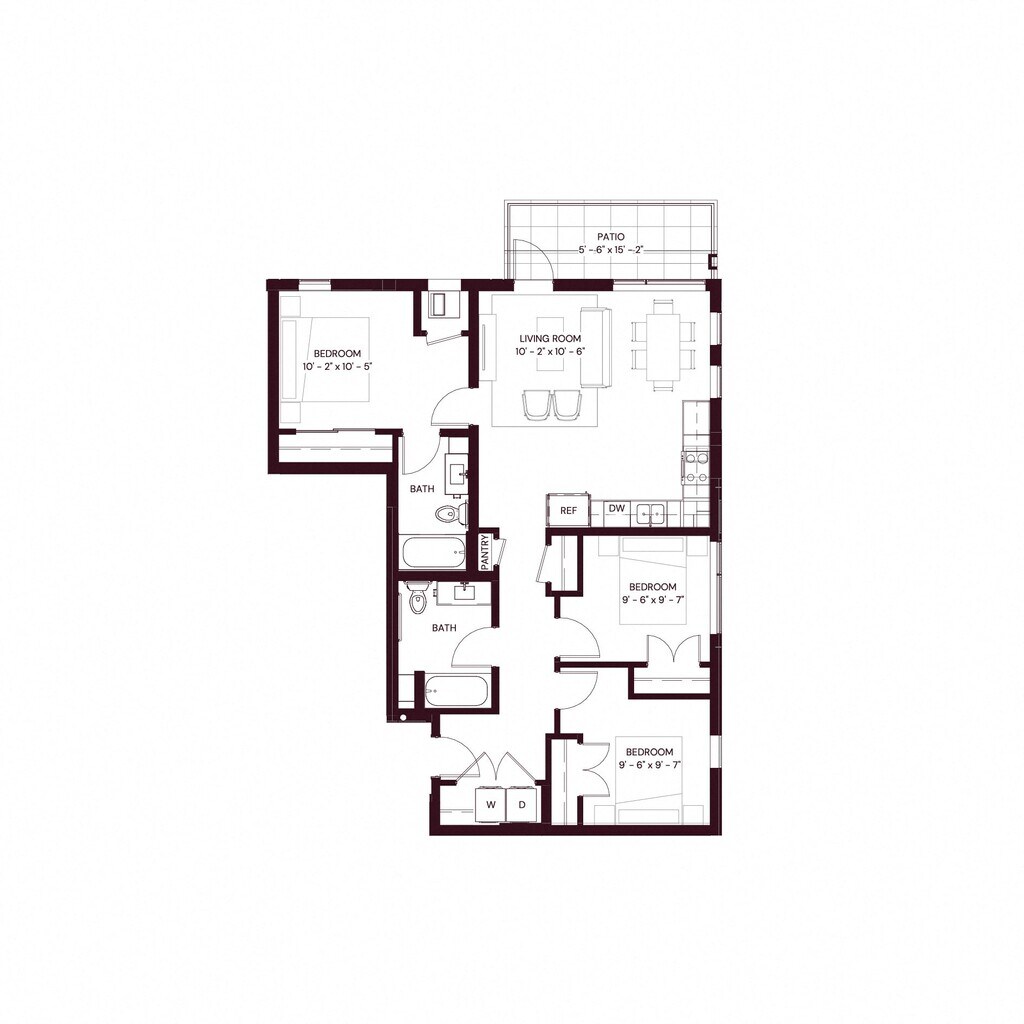 Modelo de apartamento: Dickson1 Dormitorio, 1 Baño, 528 sq ftDisponible Ahora![]()