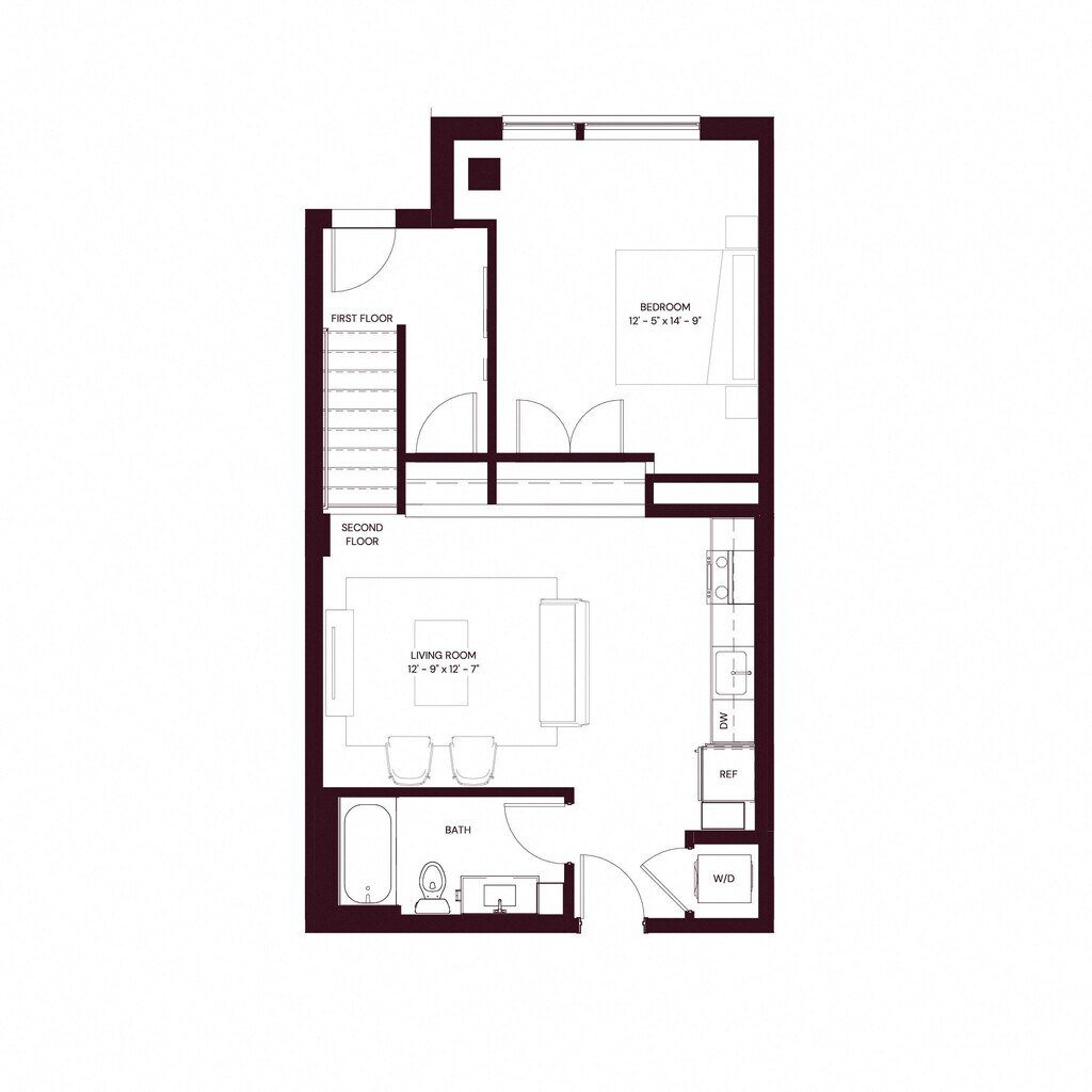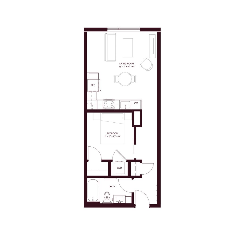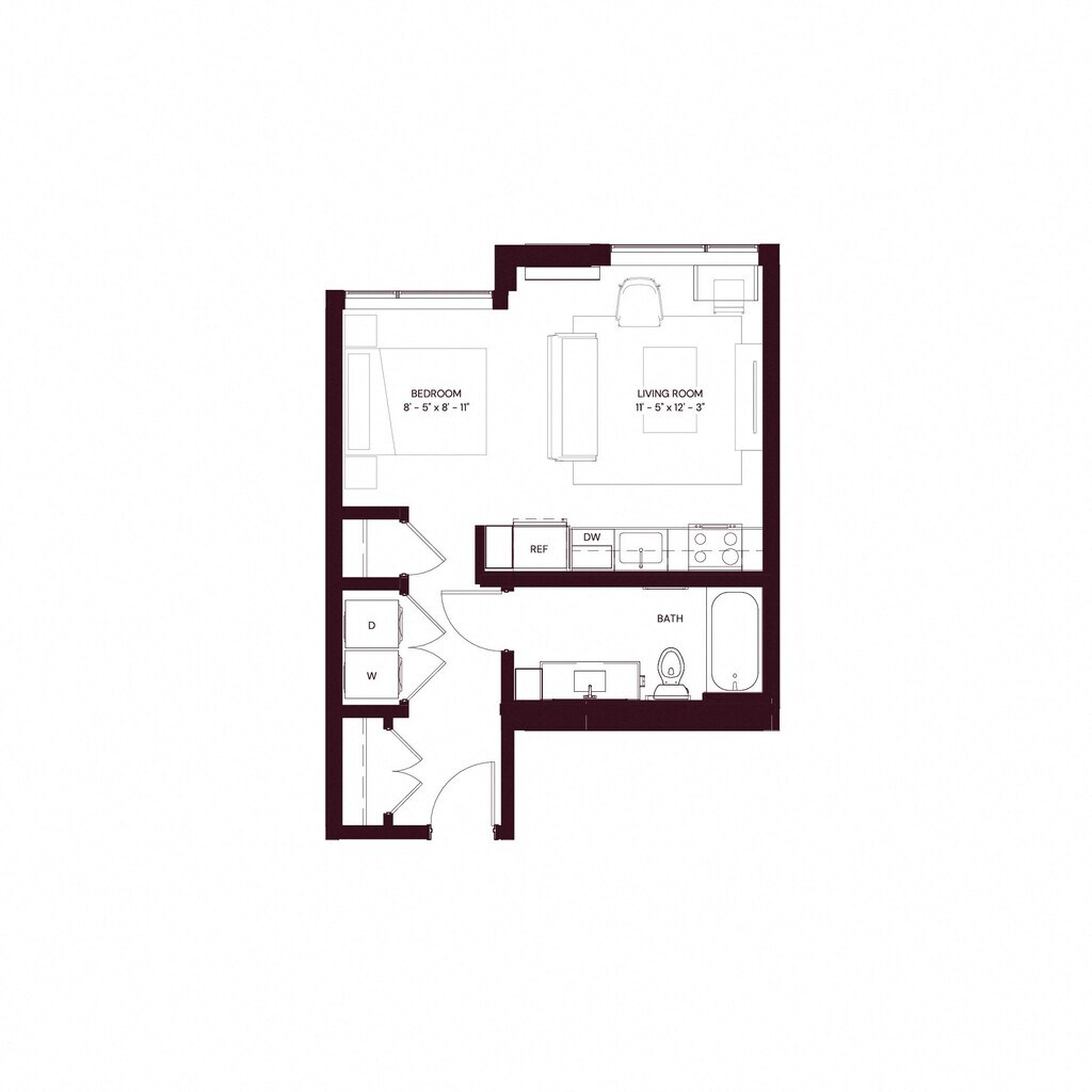 Modelo de apartamento: Stephens1 Dormitorio, 1 Baño, 528 sq ftDisponible Ahora![]()