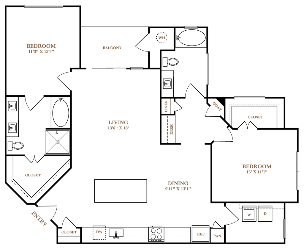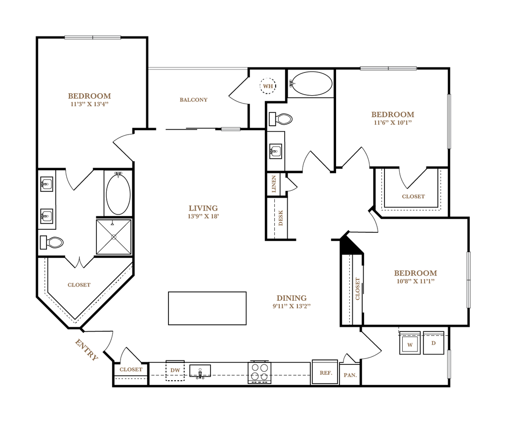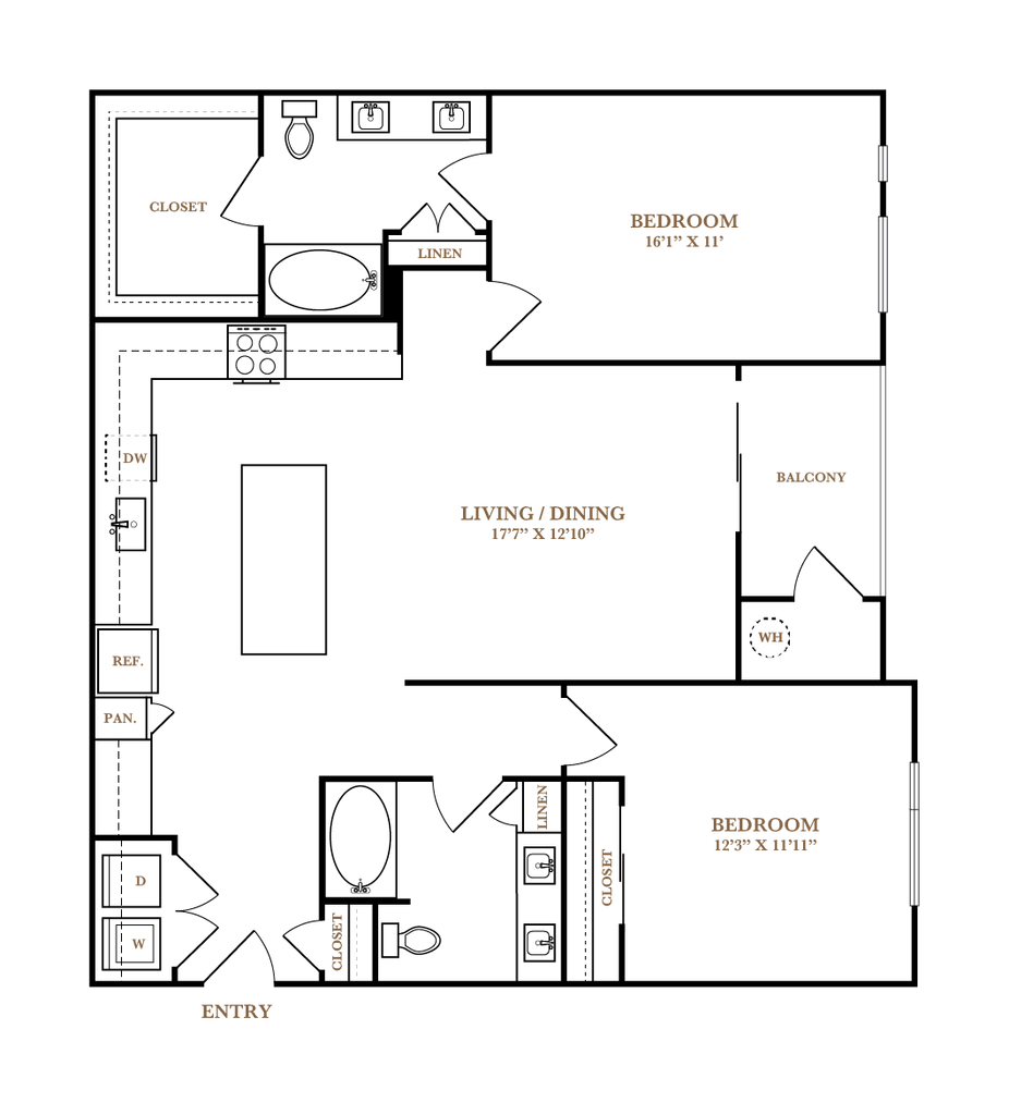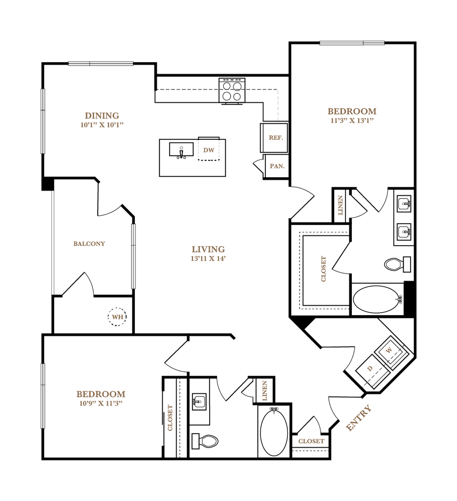 Modelo de apartamento: A3Desde $1,7991 Dormitorio, 1 Baño, 875 sq ftDisponible Ahora![]()
