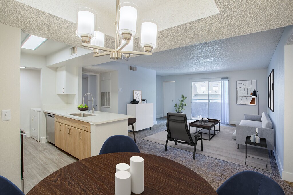 ¡Mejora tu estilo de vida en Escena, donde ofrecemos comodidad, conveniencia, calidad y valor excepcional! Nuestros amplios apartamentos de 1, 2, y 3 habitaciones con planos de planta tienen cocinas renovadas con encimeras nuevas, gabinetes, electrodomésticos de acero inoxidable, patios y balcones privados y lavadoras y secadoras en cada apartamento. ¡No tendrás que ir lejos para disfrutar de nuestras maravillosas comodidades! Aquí, en Escena, tenemos tres piscinas, spas, cancha de fútbol con cancha de atletismo al aire libre, gimnasio disponible las 24 horas, centro de negocios y paquetes, áreas de pícnic y barbacoa, área de juegos para niños y parque para mascotas. A solo un corto trayecto de distancia encontrarás el centro de Summerlin, The Lakes, Boca Park y el área recreativa de Red Rock. Estamos cerca de parques, autopistas, escuelas, bancos, tiendas, restaurantes, lugares recreativos y todo lo importante. Disfruta de un excelente servicio de atención al cliente y un hermoso entorno mientras vives en Escena Apartment Homes. ¡Llámanos, envíanos un correo electrónico, ven en persona o visítanos en línea para alquilar hoy mismo!