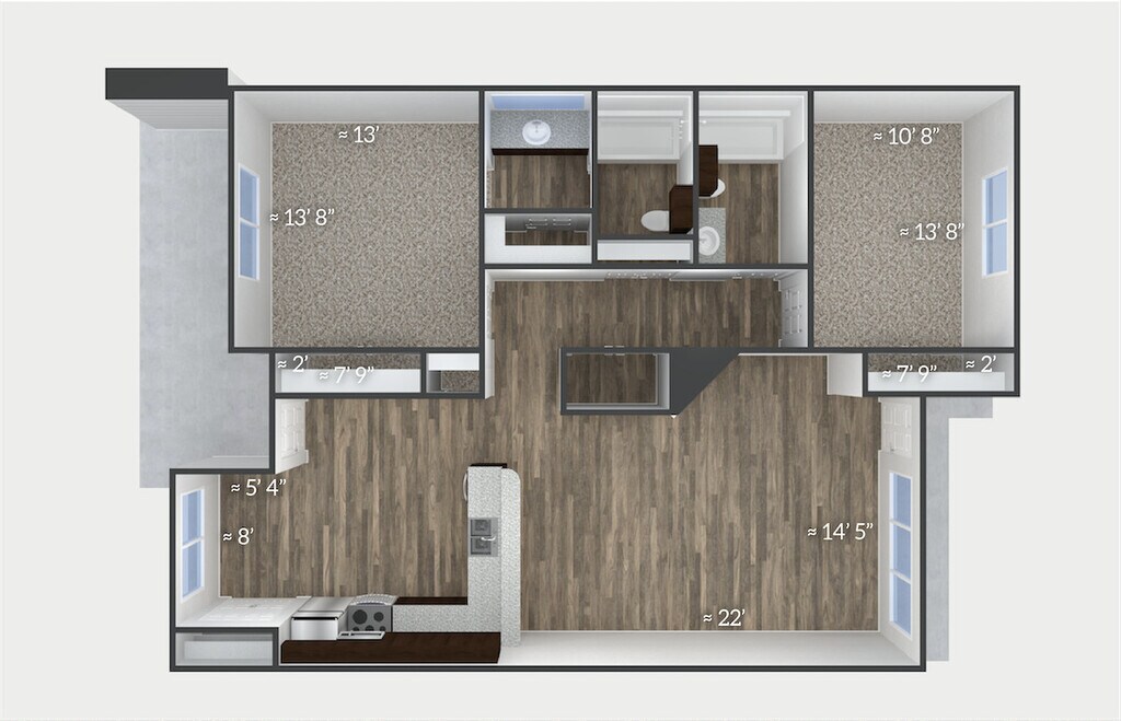 2 Dormitorios, 2 Baños, 1294 pies²Disponible AhoraEl más grandeEsta opción tiene las unidades más grandes para este modeloGalería del Modelo