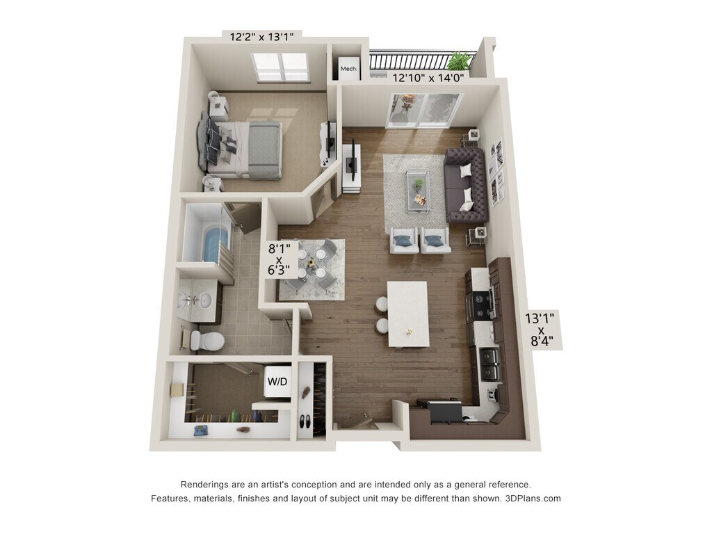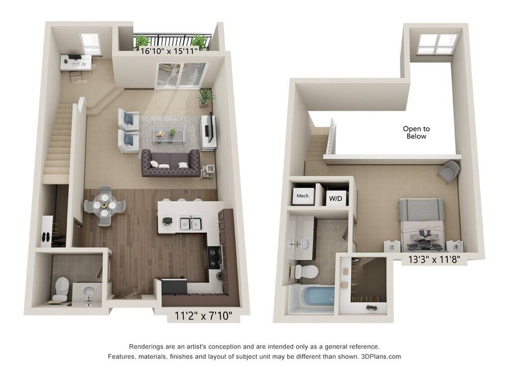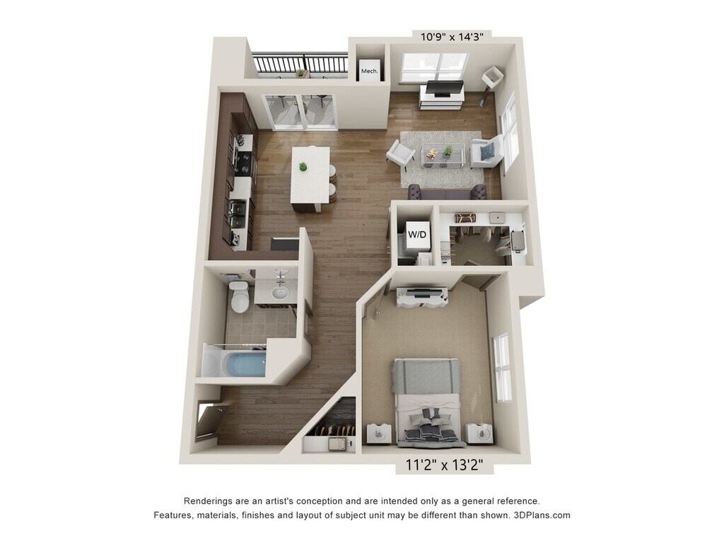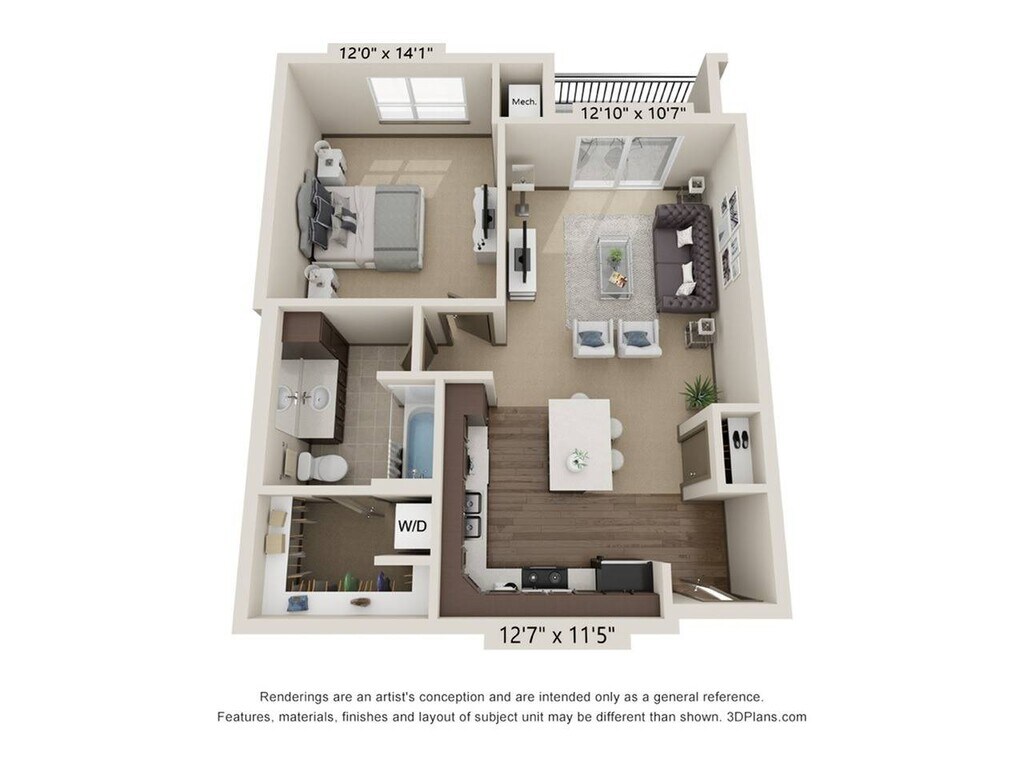 1 Dormitorio, 1 Baño, 814-849 pies²Galería del Modelo