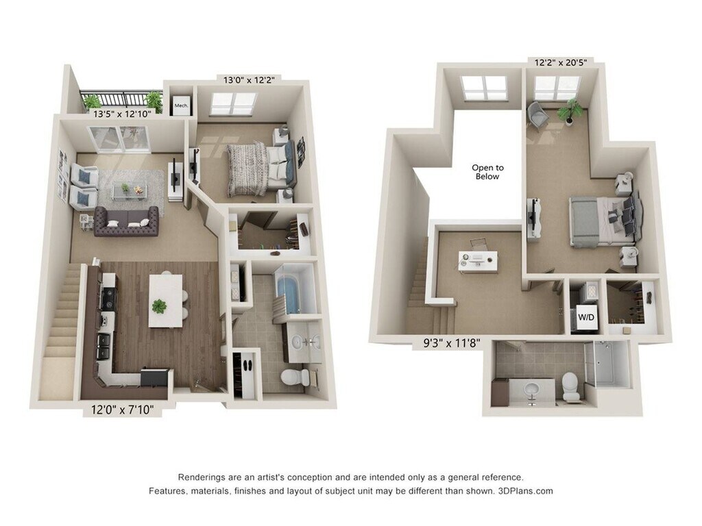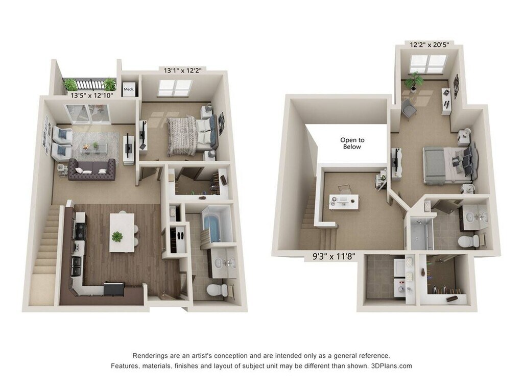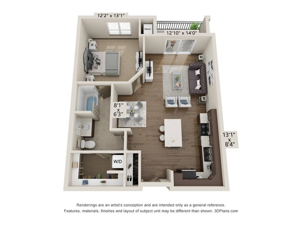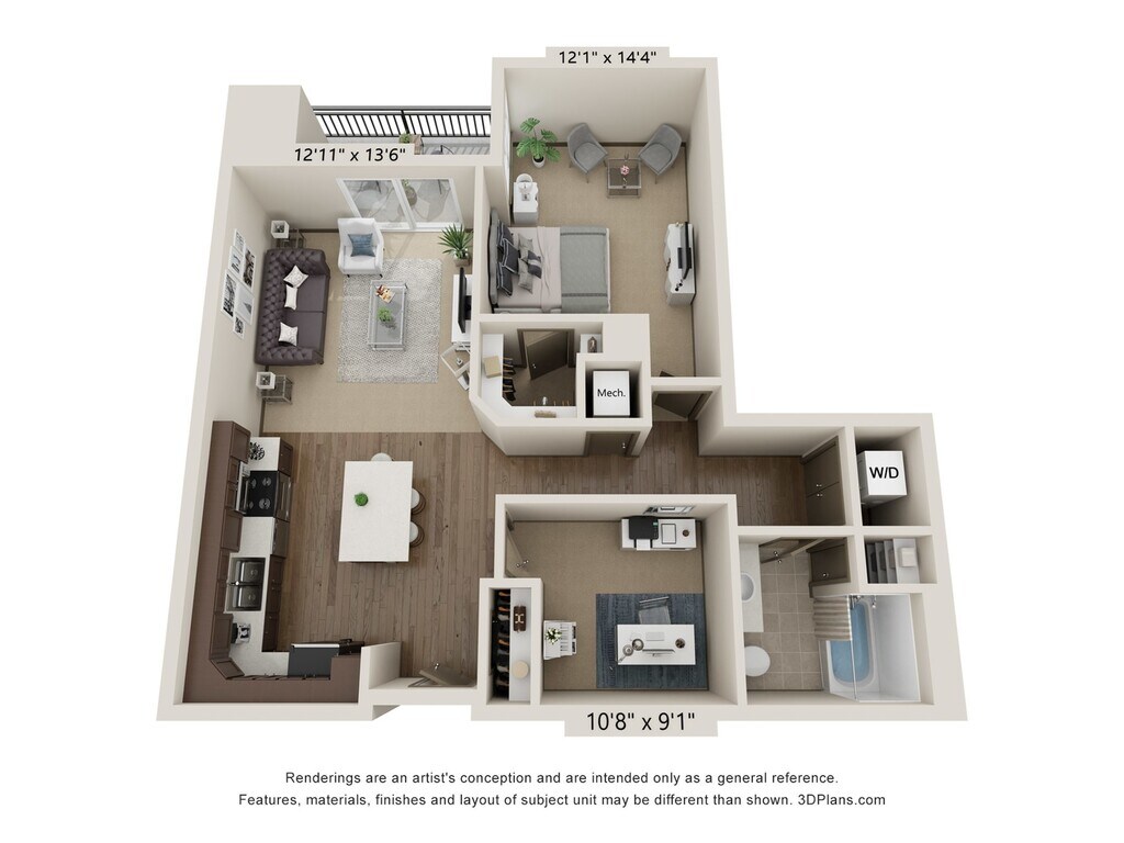 1 Dormitorio, 1 Baño, 814-849 pies²Galería del Modelo