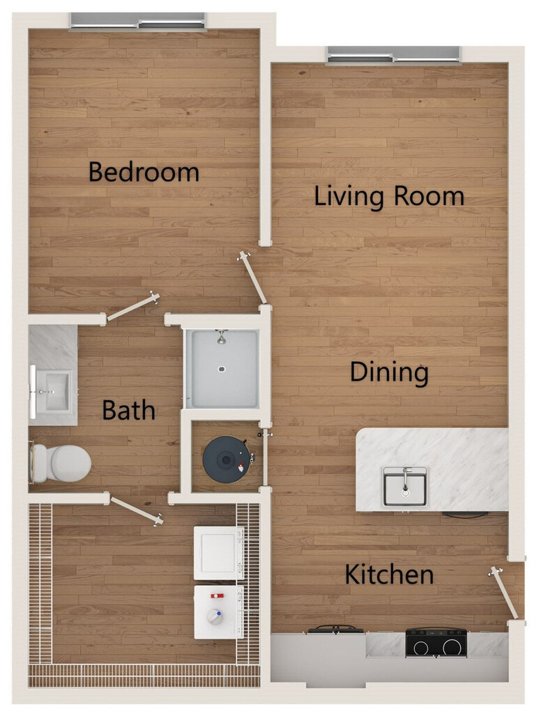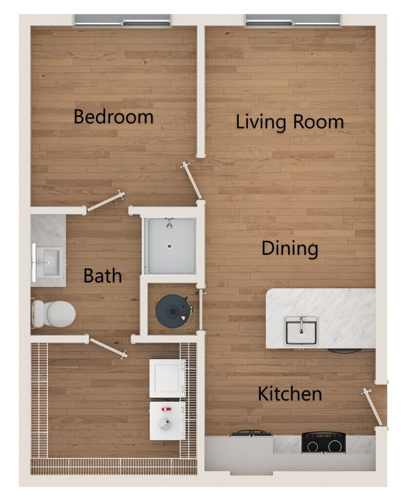 1 Dormitorio, 1 Baño, 567 pies²Disponible AhoraEl más baratoEsta opción tiene los precios más bajos para este modeloGalería del Modelo