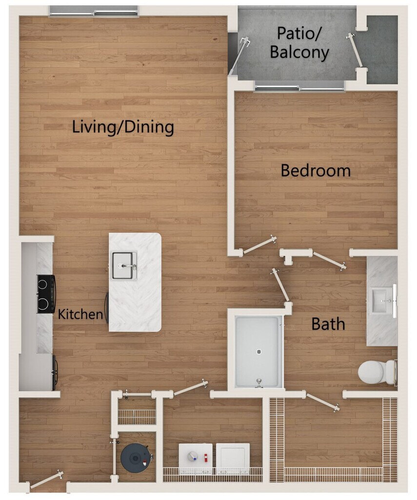 1 Dormitorio, 1 Baño, 587 pies²Disponible AhoraGalería del Modelo