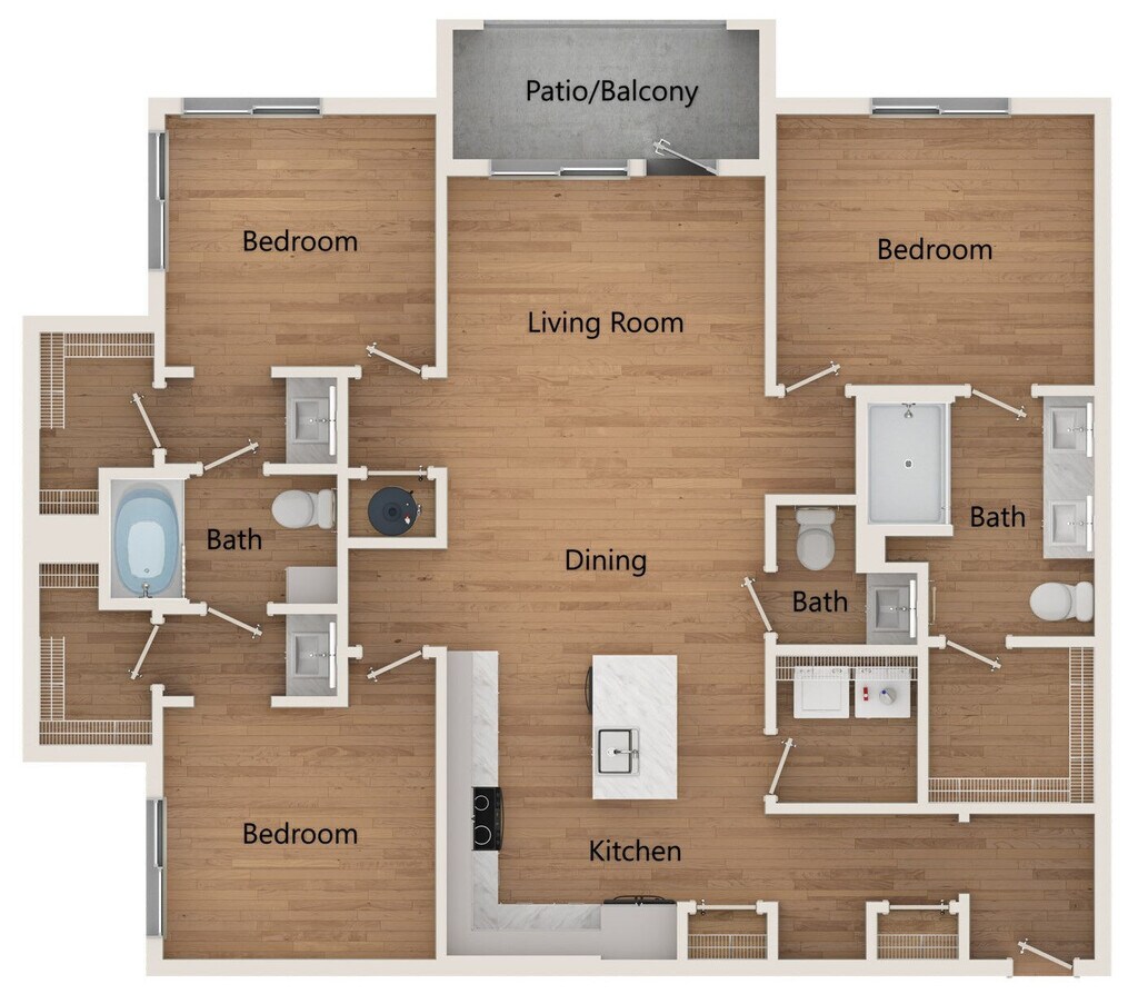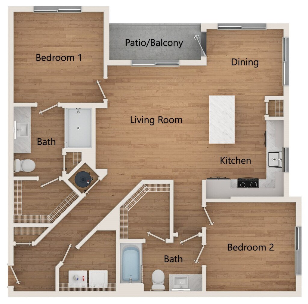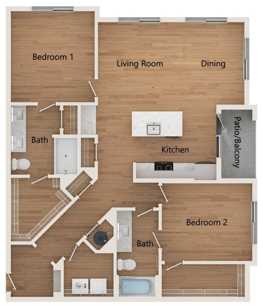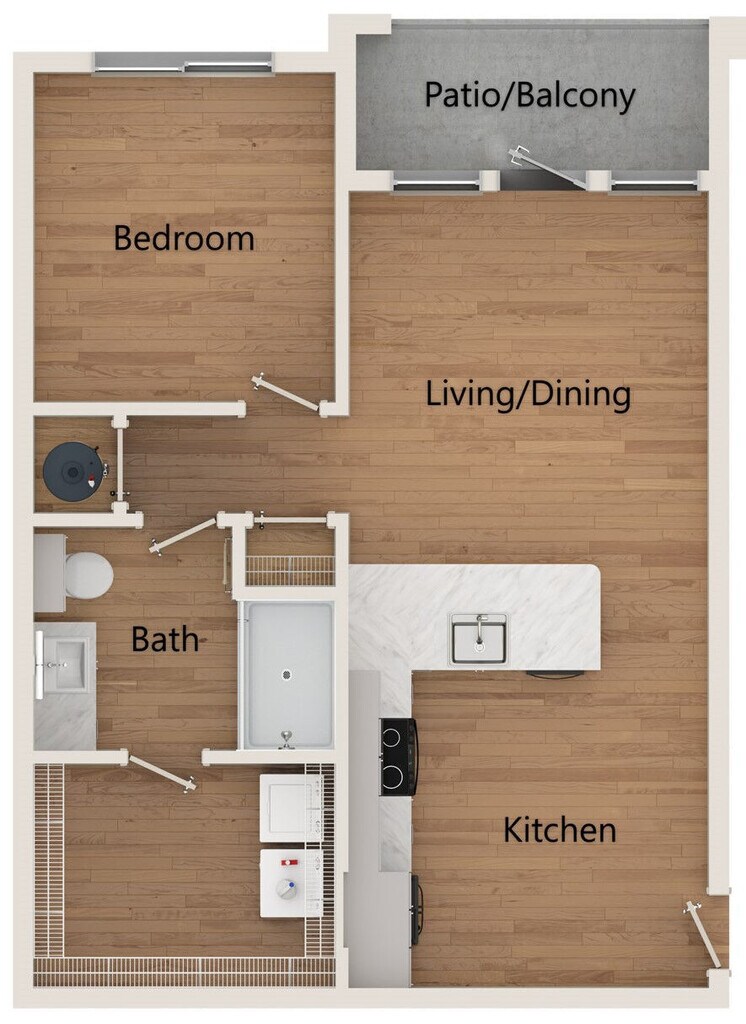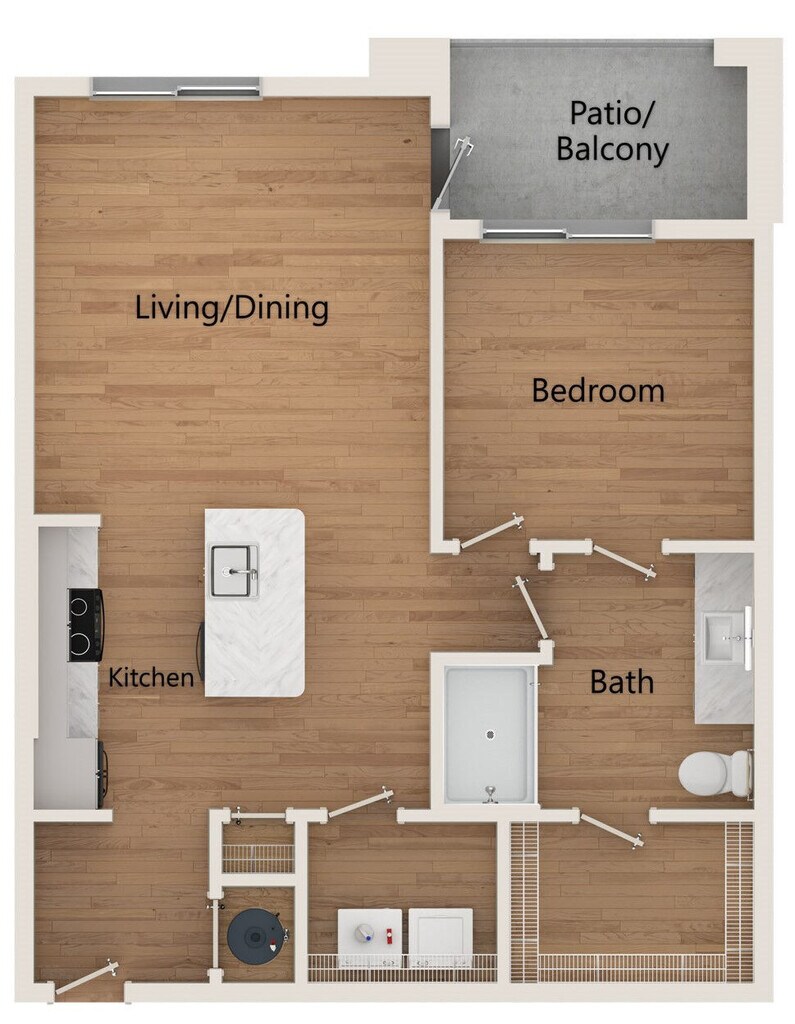 1 Dormitorio, 1 Baño, 664 pies²Disponible AhoraGalería del Modelo