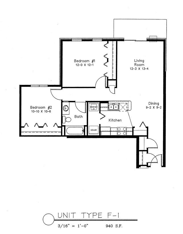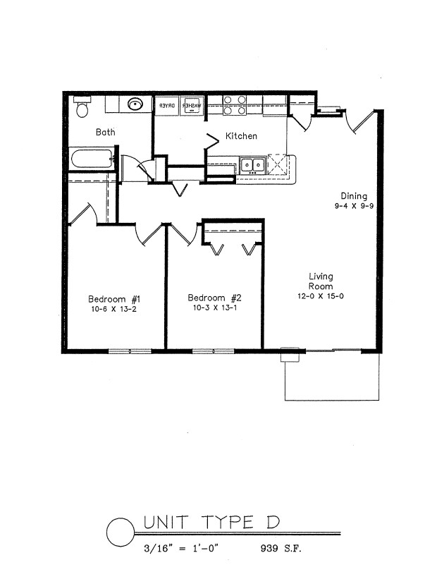 2 Dormitorios, 1 Baño, 940 pies²Galería del Modelo