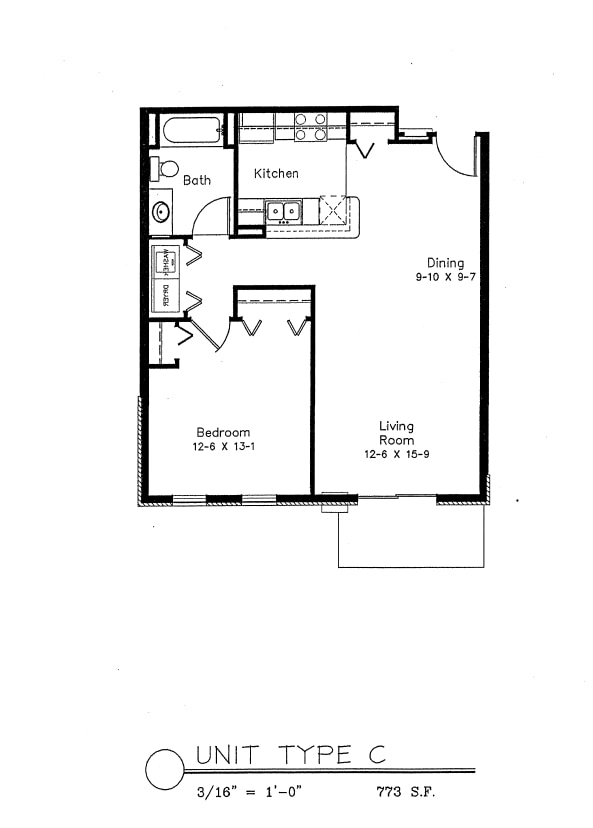 Modelo de apartamento: D1 Dormitorio, 1 Baño, 773 sq ftNo Disponible![]()