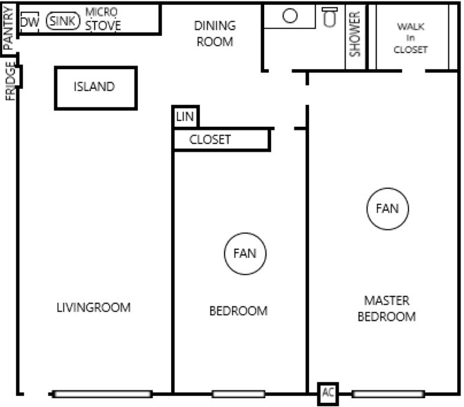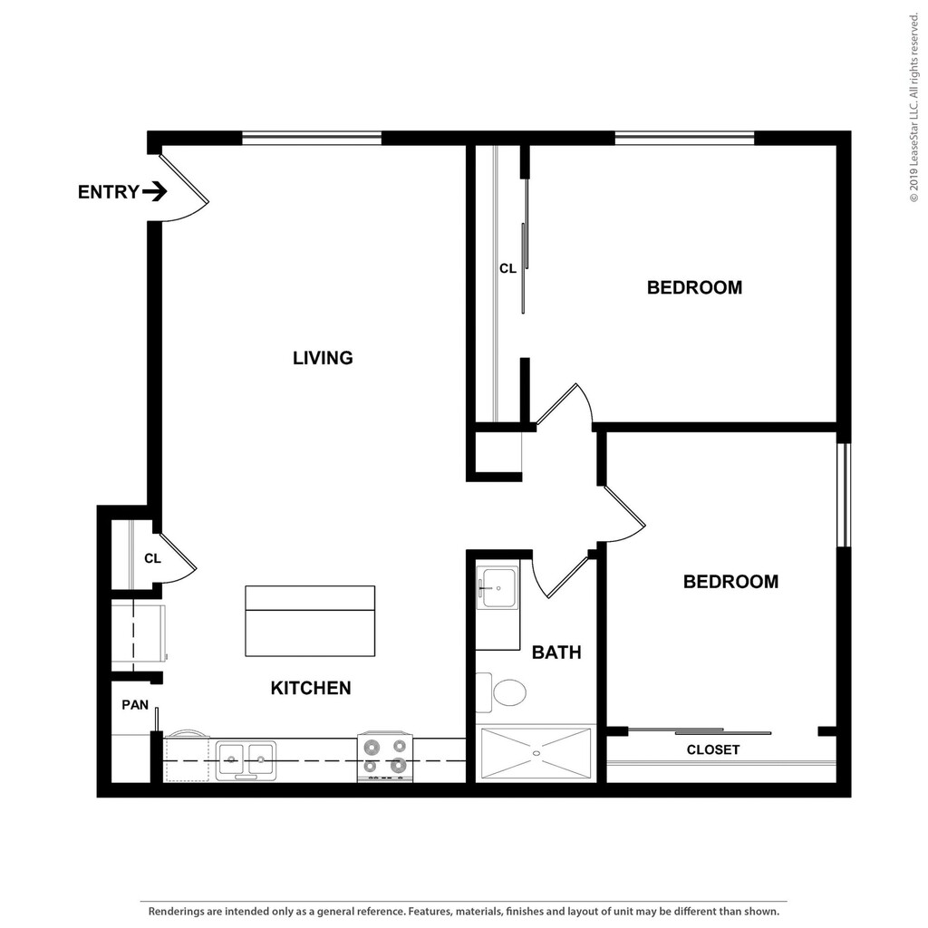 2 Dormitorios, 1 Baño, 900 pies²Galería del Modelo