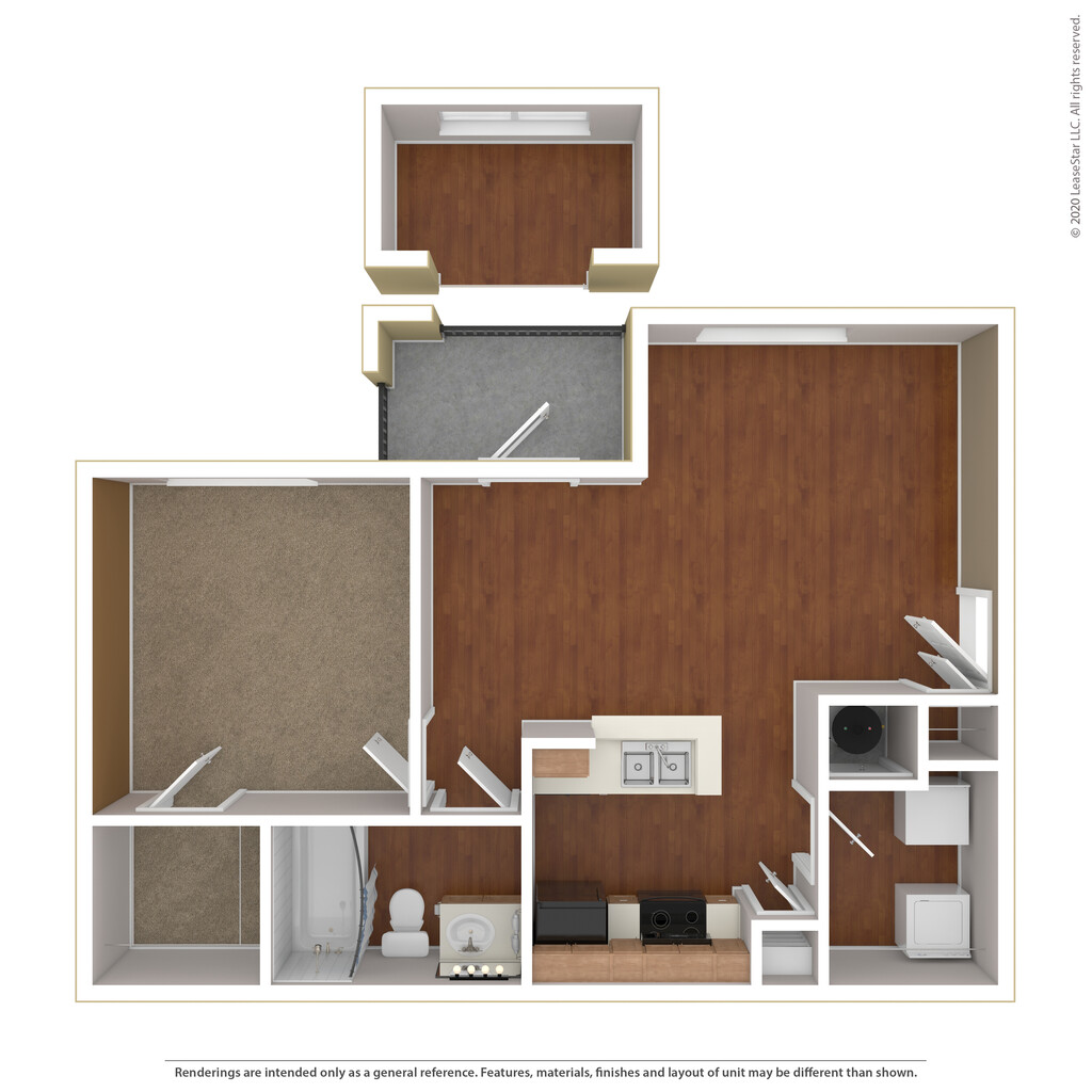 1 Dormitorio, 1 Baño, 637 pies²Disponible January 6, 2026Galería del Modelo