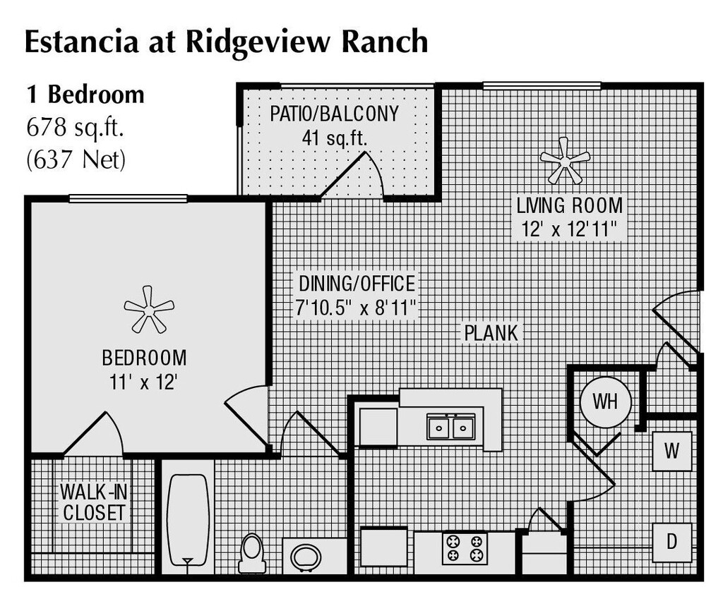 1 Bed 1 Bath 678 SqFt (678 Net)