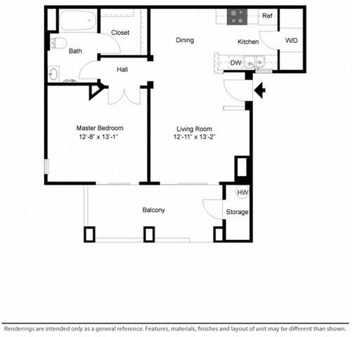 Estudio, 1 Baño, 845 pies²Galería del Modelo