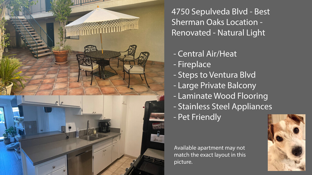 UBICACIÓN PRIVILEGIADA EN SHERMAN OAKS. A DISTANCIA A PIE DE BLVD. UNA HABITACIÓN DE LUJO $2395 BONIFICACIÓN DE MUDANZA (CON CRÉDITO APROBADO) DISTANCIA A PIE DE TODO! TRANQUILO EDIFICIO/ADMITEN MASCOTAS - SE ADMITEN MASCOTAS - AIRE ACONDICIONADO - TOMANDO APLICACIONES AHORA! TODOS LOS ELECTRODOMÉSTICOS NUEVOS DE ACERO INOXIDABLE INC NUEVO REFRIGERADOR. CAMINA HASTA ASÍ QUE GALLERIA, WHOLE FOODS, 24 HR.FITNESS, CINES & MÁS CAMINA A VENTURA BLVD. EN MINUTOS DE EXCELENTES RESTAURANTES, TIENDAS & VIDA NOCTURNA JUSTO A LA SALIDA DE LA 101 Y 405 FRWYS, CERCA DE LA UCLA, HOLLYWOOD, SANTA MÓNICA Y SILICON BEACH LG BALCÓN PRIVADO & CHIMENEA AMPLIA PISOS DE MADERA DE TABLONES LAMINADOS ESTACIONAMIENTO ASIGNADO EN GARAJE PRIVADO SUBTERRÁNEO ENTRADA CON INTERCOMUNICADOR PRIVADO/CÁMARAS DE VIGILANCIA AIR/CENTRAL CALEFACCIÓN CENTRALIZADOS PROPIEDAD LIBRE DE HUMO LAVANDERÍA EN EL LUGAR JACUZZI Y ÁREA DE SUN/BBQ 24/7 RESPUESTA DE MANTENIMIENTO GERENTE CORDIAL EN EL LUGAR. NOS ENCANTAN LAS MASCOTAS QUE ADMITE MASCOTAS! LUZ NATURAL. 4750 es un complejo cálido y amigable vs. Un apartamento. Haz de tus amigos para toda la vida cuando te mudes aquí.