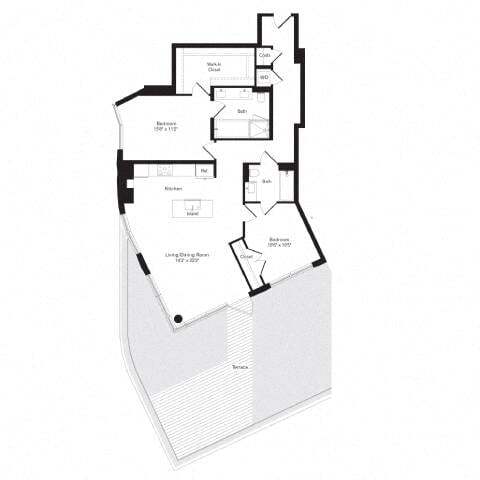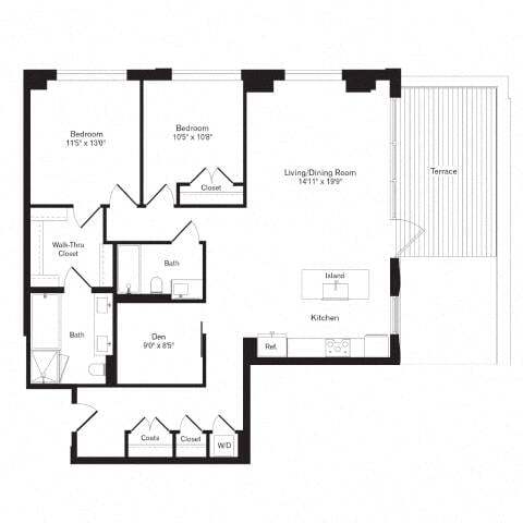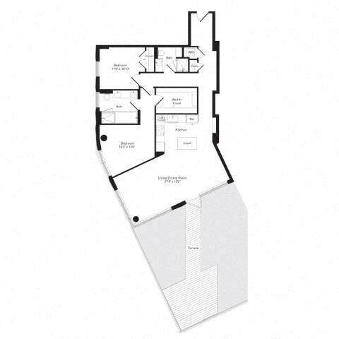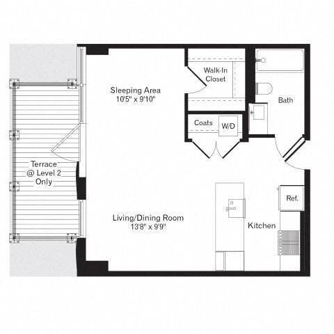 Modelo de apartamento: SG w/ TerraceEstudio, 1 Baño, 572 sq ftDisponible Ahora![]()