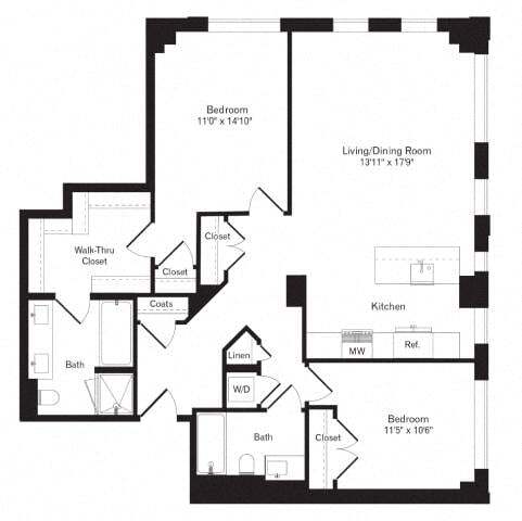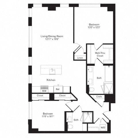 Modelo de apartamento: Jr 1F1 Dormitorio, 1 Baño, 649 sq ftDisponible Ahora![]()