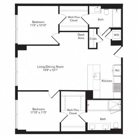 Modelo de apartamento: SFEstudio, 1 Baño, 572 sq ftDisponible Ahora![]()