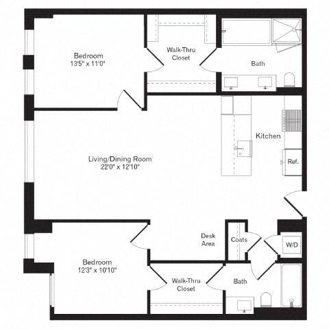 1 Dormitorio, 1 Baño, 649 pies²Disponible AhoraGalería del Modelo