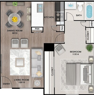 1 Dormitorio, 1 Baño, 660 pies²Disponible AhoraGalería del Modelo
