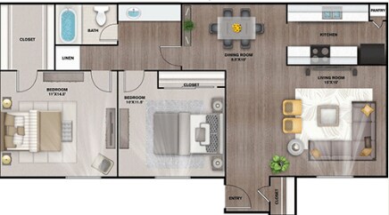 2 Dormitorios, 1 Baño, 954 pies²Disponible AhoraGalería del Modelo