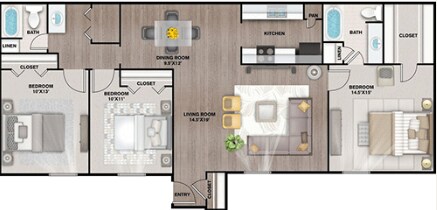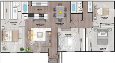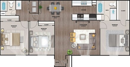 Modelo de apartamento: The WindsorDesde $1,1752 Dormitorios, 1 Baño, 951 sq ftDisponible Ahora![]()