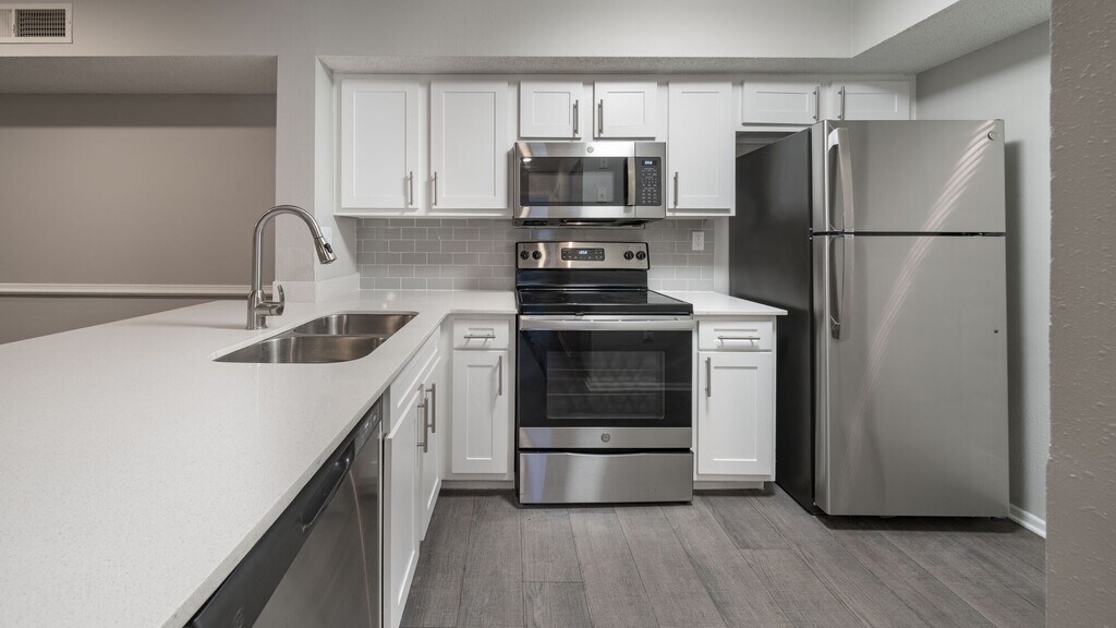 - Electrodomésticos de acero inoxidable y encimeras de granito