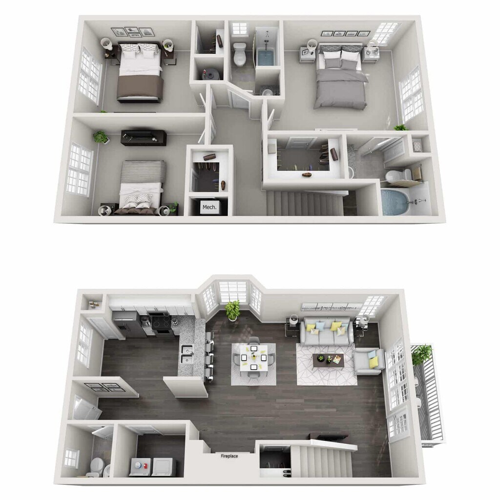 Modelo de apartamento: Dogwood$2,3953 Dormitorios, 2.5 Baños, 1555 sq ftDisponible pronto![]()