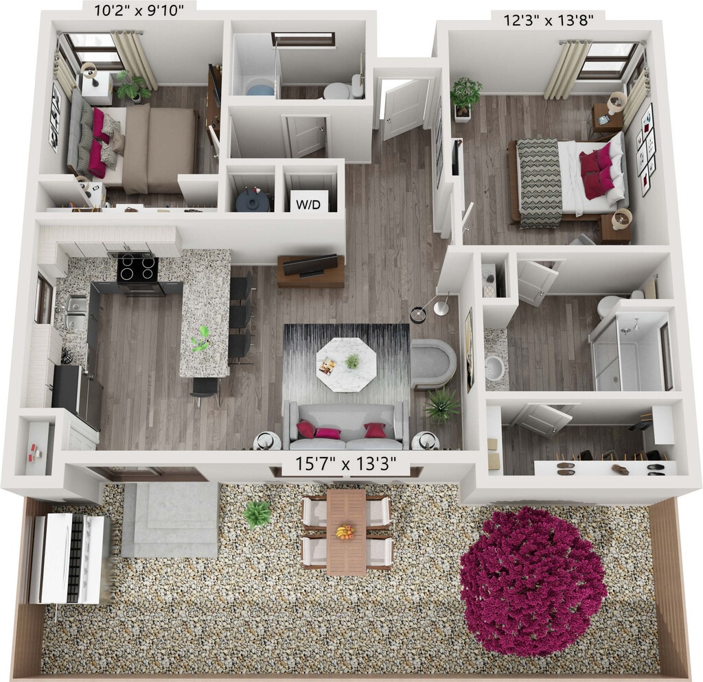 2 Dormitorios, 2 Baños, 971 pies²Galería del Modelo